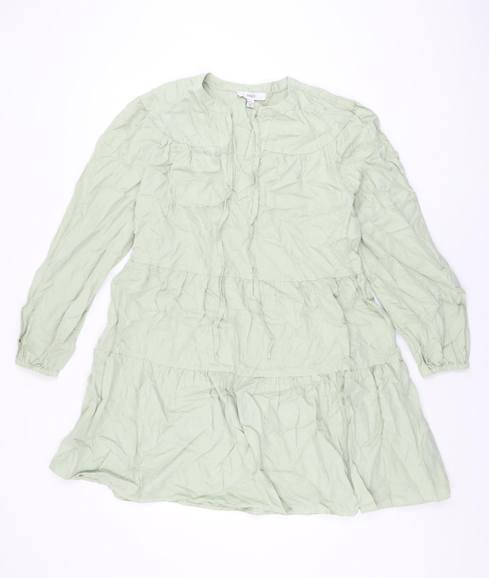 Marks and Spencer Womens Green Floral Viscose Maxi Size 12 Round Neck Tie
