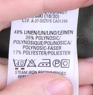 Discover a timeless wardrobe staple with this Marks and Spencer Women's Midi Straight & Pencil Skirt in a refreshing green hue. Crafted from a luxurious blend of 48% linen, 35% polynoisic, and 17% polyester, ensuring comfort and durability for any occasion. The skirt boasts a casual fit, perfect for autumn, spring, and summer, and features a classic button closure for easy wear. With its no-pattern design, this vintage piece offers a minimalist aesthetic that pairs perfectly with a range of tops. Ideal for the modern woman seeking both style and comfort, this skirt is an excellent addition to any wardrobe. Machine washable for easy care, it makes a versatile choice for laid-back outings or casual workwear. Despite its excellent condition, the item displays a few wrinkles, adding a touch of character to its overall look.