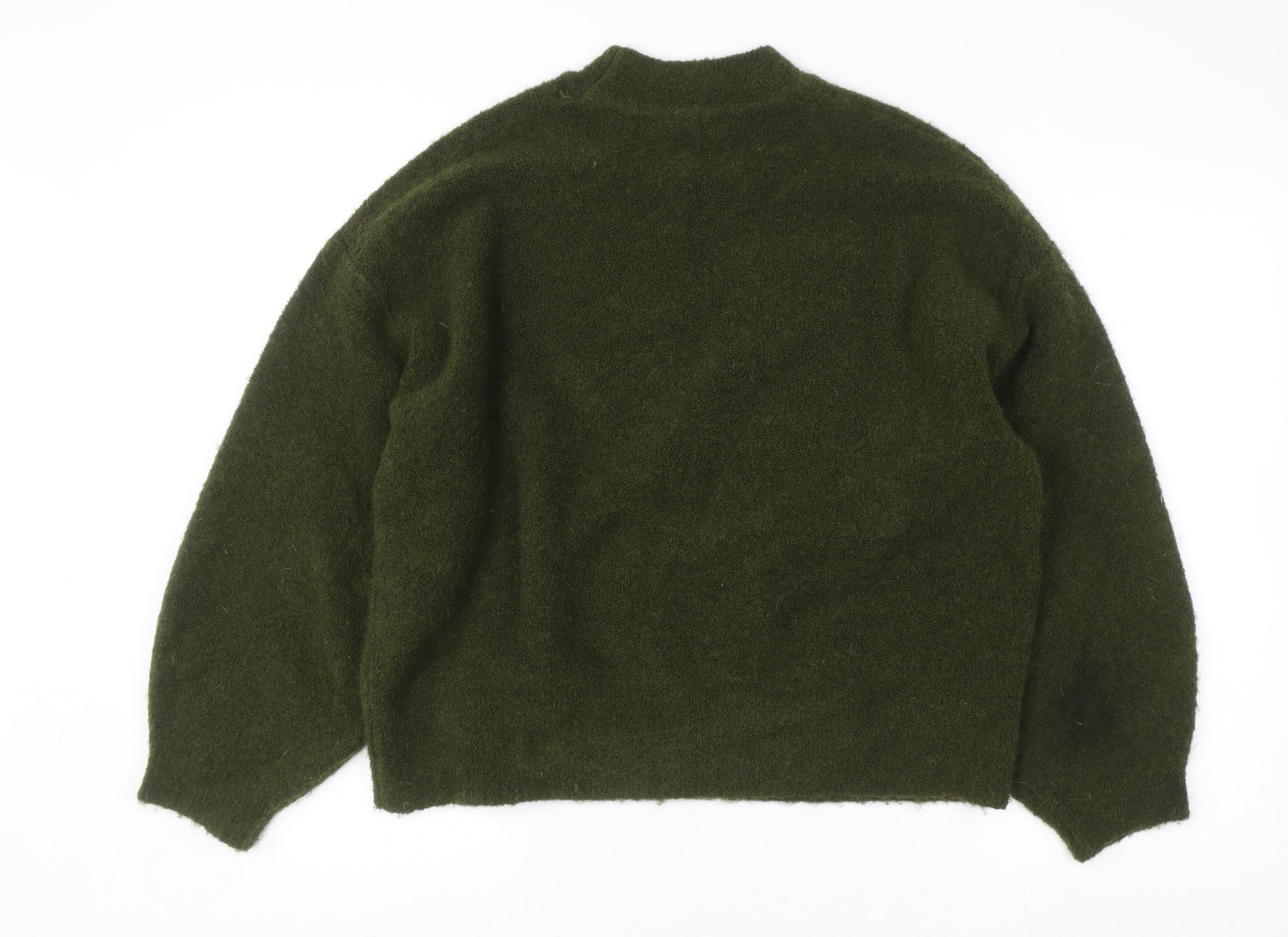 Womens Green Mock Neck Wool Blend Pullover Jumper L