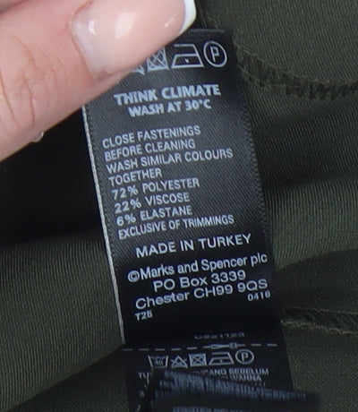 Enhance your wardrobe with this chic and versatile pencil skirt from Marks and Spencer. Made from a quality blend of 72% Polyester, 22% Viscose, and 6% Elastane, this skirt ensures both comfort and durability. Its elegant straight and pencil design in a rich green hue makes it a perfect choice for a variety of occasions, from casual outings to workplace meetings. The skirt features a functional zip accent and convenient pockets, combining style with practicality. With its regular fit in size 12, this piece is designed to flatter a variety of body shapes. Machine washable for easy care, this is an essential item for those who value style and convenience. Dive into the world of subtle yet stunning fashion with this M&S creation, which promises to be a staple in your collection for years to come.
