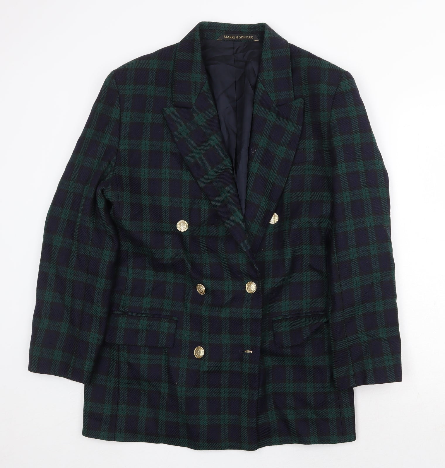 Womens Green Plaid Jacket Blazer Size 16 Button