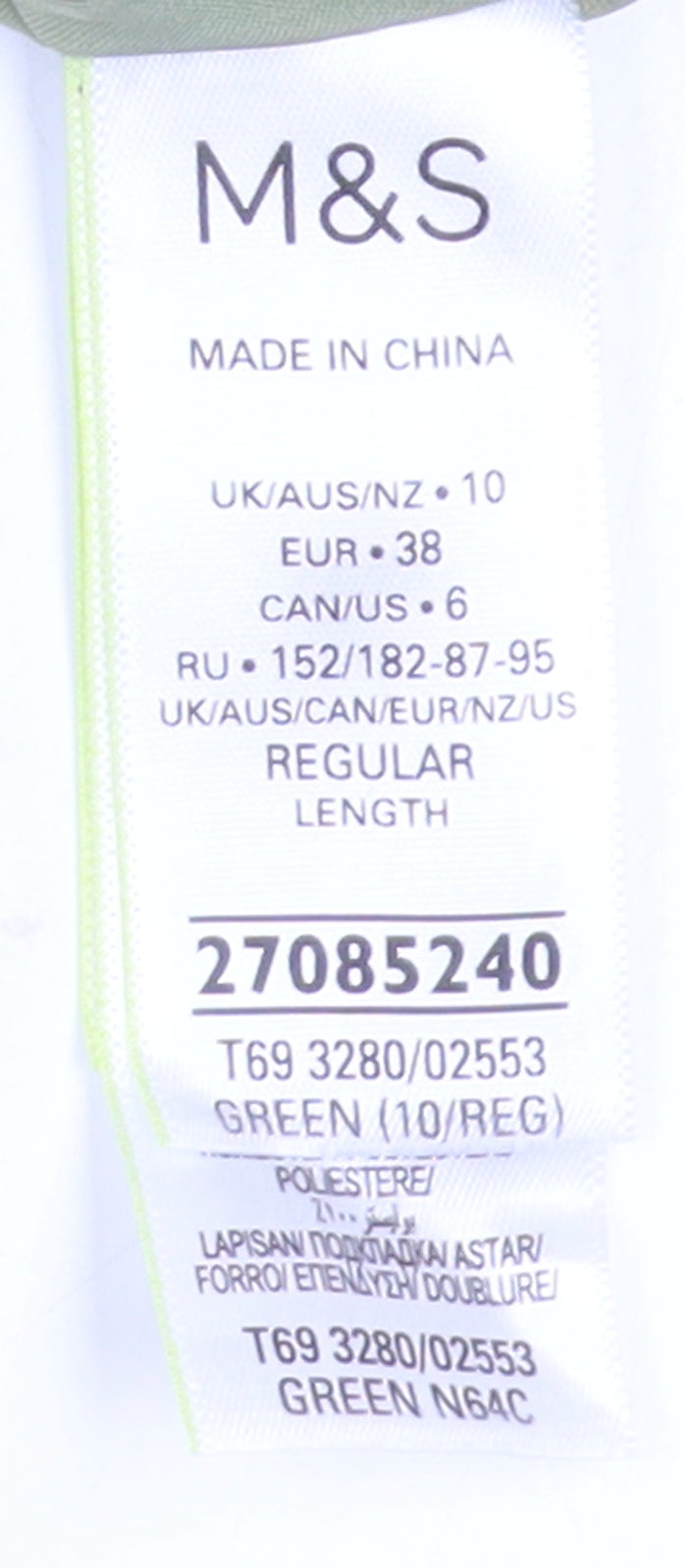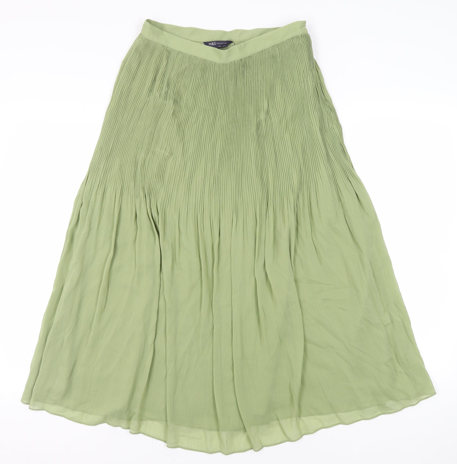 Add a touch of elegance to your wardrobe with this stunning pleated midi skirt from Marks and Spencer. Crafted from high-quality polyester, this skirt boasts a luxurious feel and ensures durability and comfort for all-day wear. The beautiful green hue and pleated design make it a perfect choice for a variety of occasions, whether you're attending a meeting or going out for a casual lunch. The midi length offers a sophisticated look that's versatile and chic, an ensemble that transitions effortlessly from day to night. With a machine-washable feature, this skirt promises easy maintenance, making it an ideal addition to any busy woman's closet. This skirt, in a size 10, fits true to size, providing a flattering silhouette with a mid-rise fit. Perfectly suited for regular size types, it ensures you'll enjoy both style and comfort. As a part of Marks and Spencer's signature collection, this piece reflects quality craftsmanship and timeless style. Elevate your attire with this lovely green skirt that makes a fantastic base for your mix-and-match outfits. Whether you're pairing it with a blouse for the office or a casual top for a day out, this skirt is sure to become a beloved staple in your wardrobe.