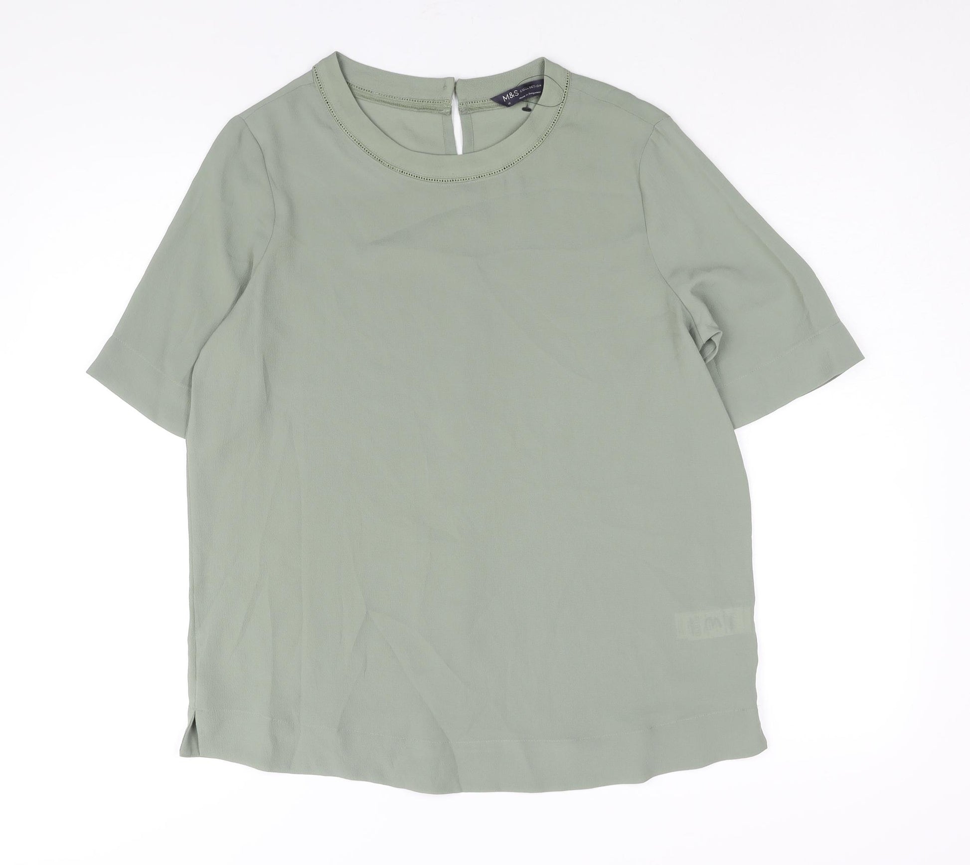 Womens Green Polyester Basic Blouse Size 12 Round Neck