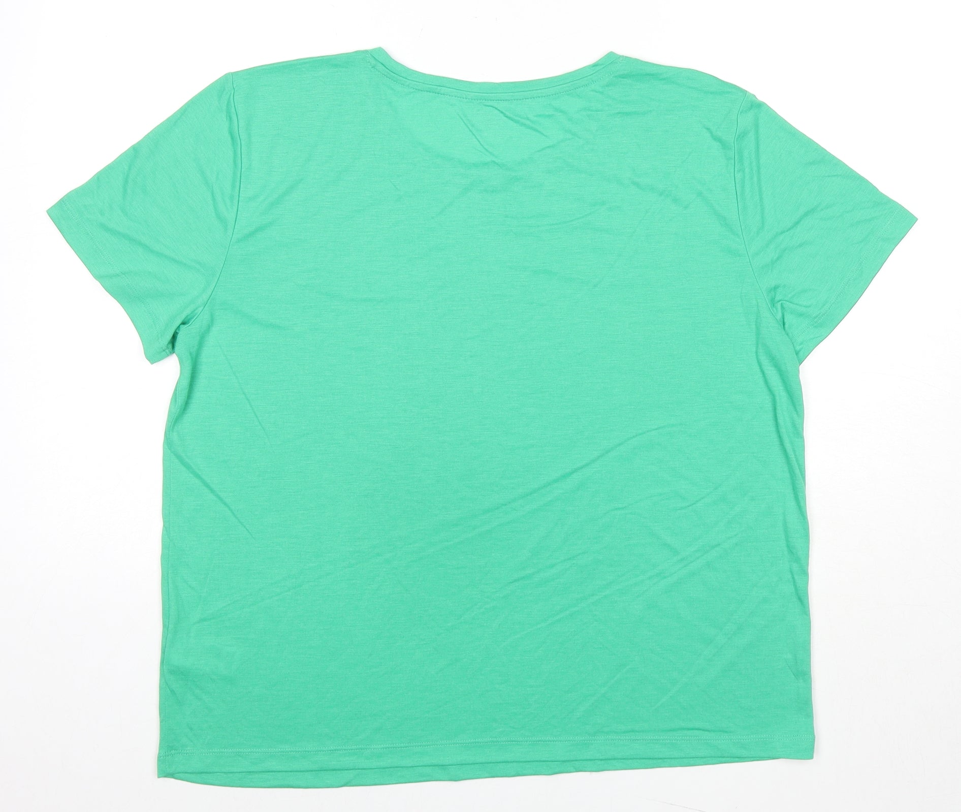 Womens Green Polyester Basic T-Shirt Size 14 Crew Neck