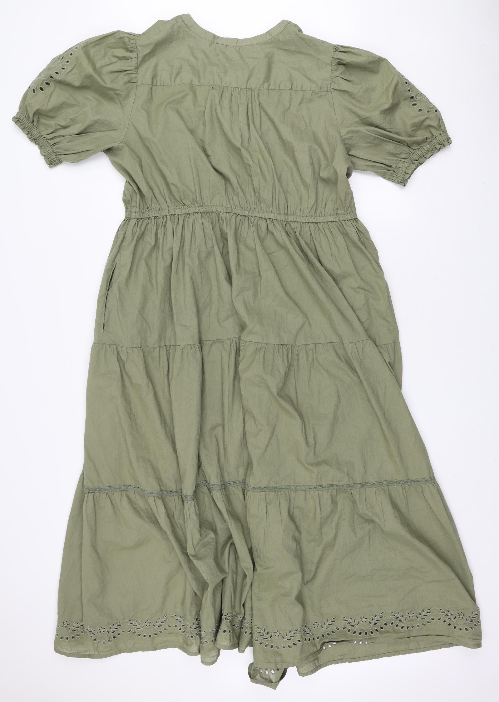 Womens Green Polyester Skater Dress Size 18 V-Neck Pullover