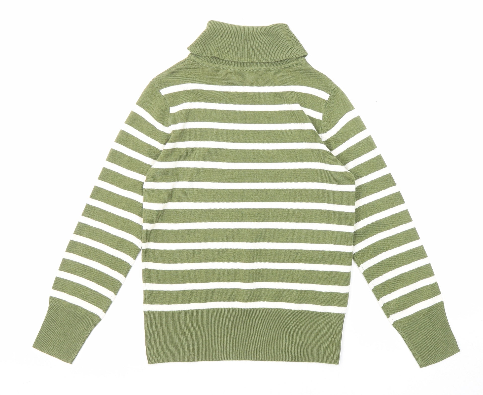 Womens Green Roll Neck Striped Acrylic Pullover Jumper Size 6
