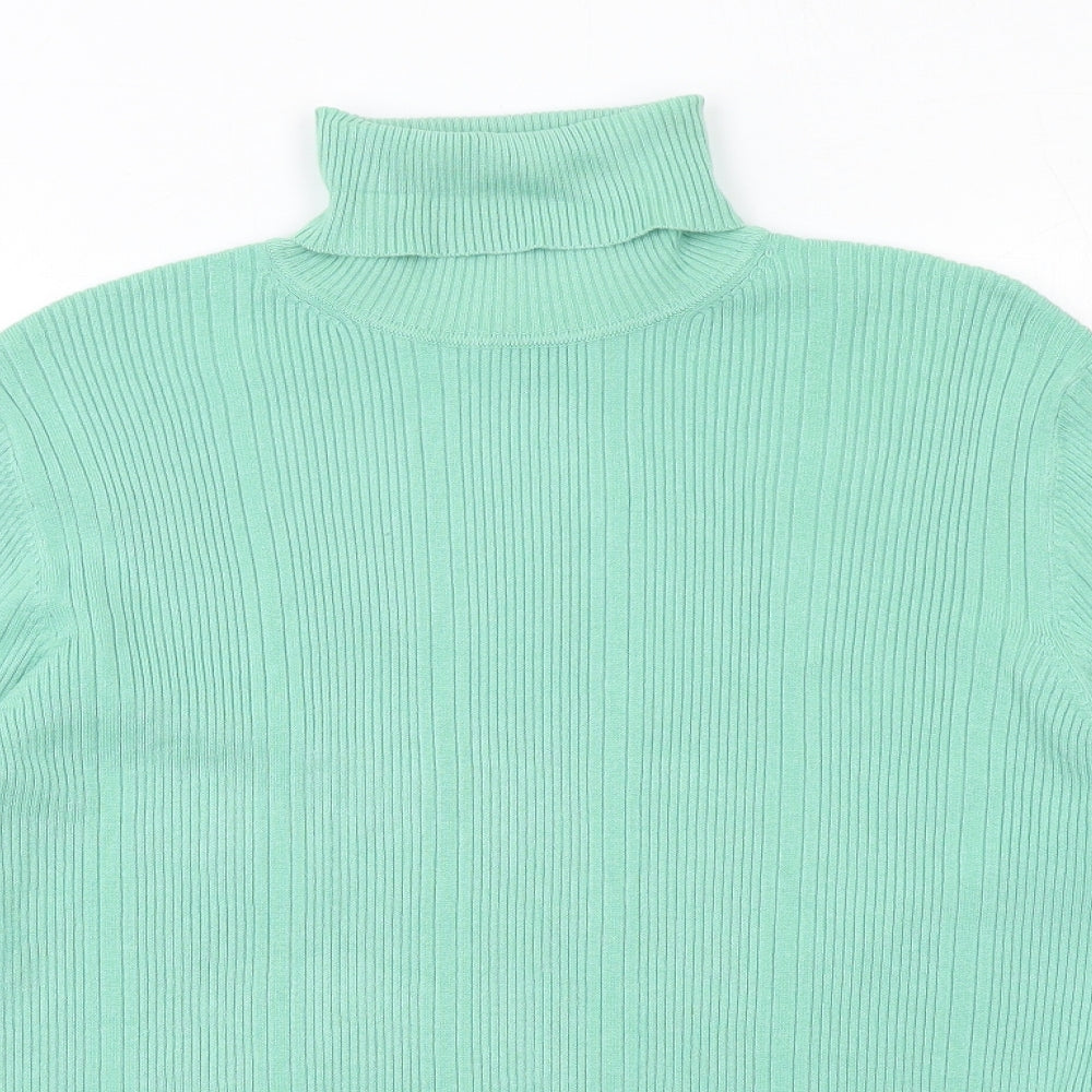 Womens Green Roll Neck Viscose Pullover Jumper Size 16