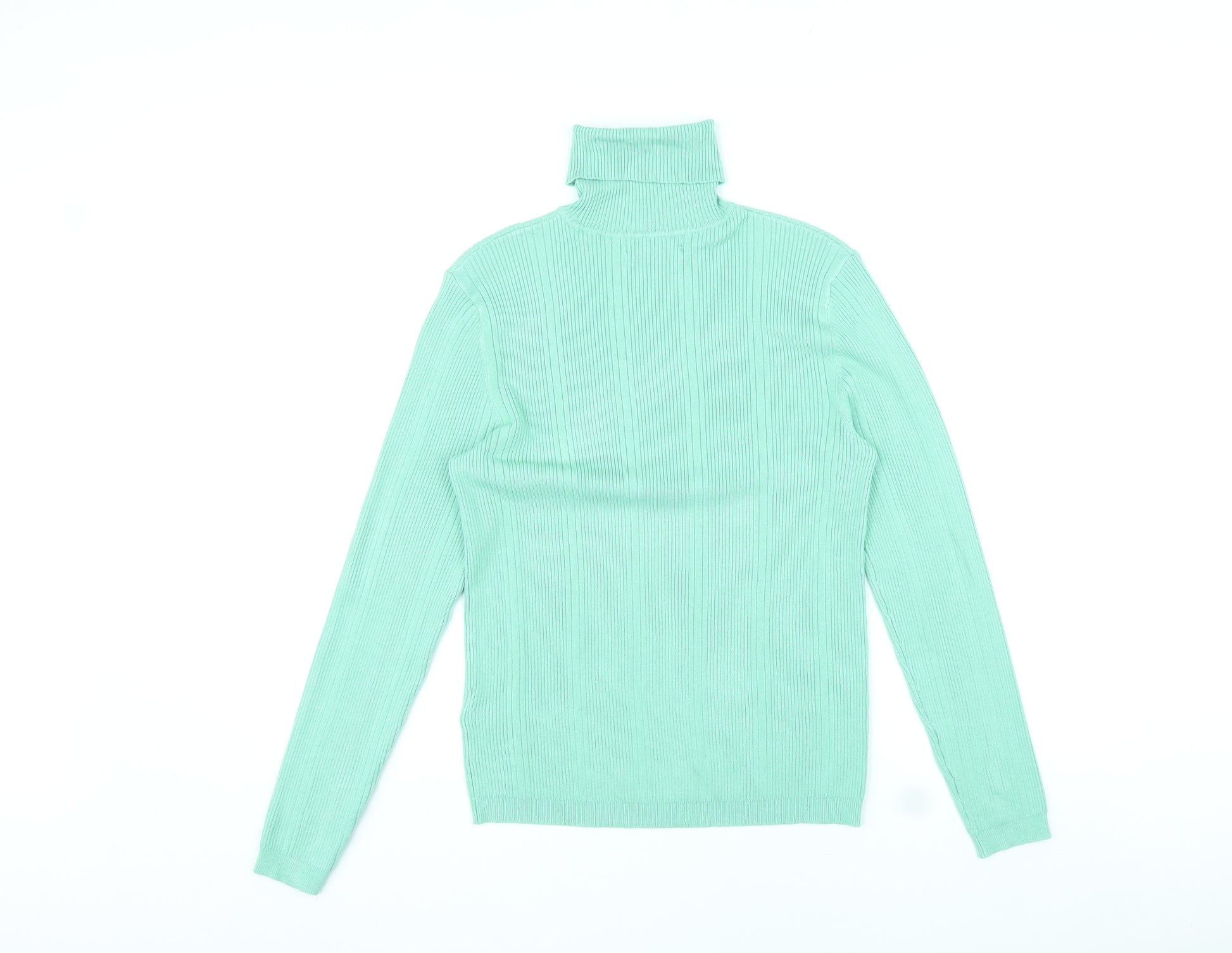 Womens Green Roll Neck Viscose Pullover Jumper Size 10