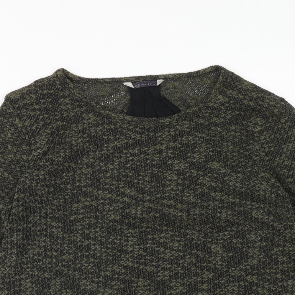 Womens Green Round Neck Cotton Pullover Jumper Size 12