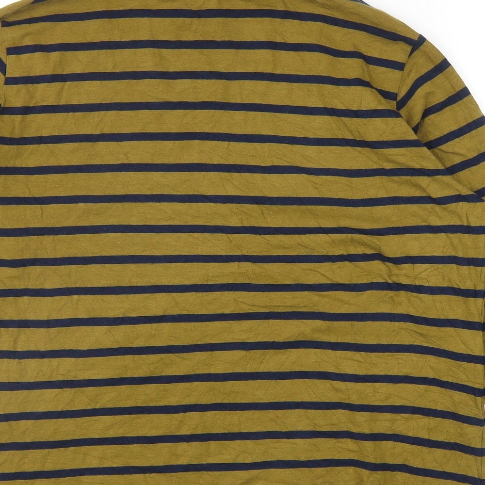 Womens Green Striped Cotton Basic T-Shirt Size 20 Mock Neck