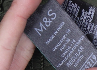 Elevate your wardrobe with this Marks and Spencer Women's Tunic Blouse in a stylish green colour. Designed with comfort in mind, this blouse features a flattering V-neckline and long, balloon sleeves, making it perfect for a casual yet chic look. Crafted from high-quality polyester, it promises durability and comfort all year round. With a regular fit and size 18, it caters to those seeking a relaxed and effortless style. The subtle ruffle accents add a touch of elegance, making it versatile for various occasions. Machine washable for easy care, this blouse is an excellent addition to your collection. Ideal for a laid-back day out or a casual gathering, don't miss the chance to own this timeless piece.