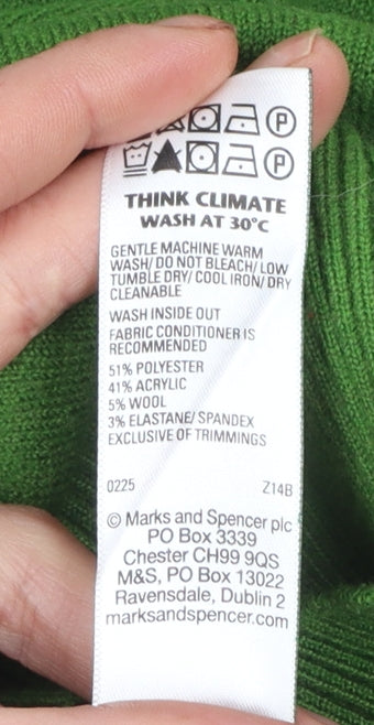 Add a touch of timeless style to your wardrobe with this lovely Marks and Spencer women's green V-neck pullover jumper. Crafted with a soft and comfortable blend of polyester, acrylic, wool, and elastane, it offers a perfect mix of warmth, stretch, and durability. The rich green hue provides a vibrant but classic look that’s ideal for everyday wear or layering throughout the cooler seasons. Designed in a regular fit with long sleeves and a flattering V-neckline, this jumper easily complements jeans, skirts, or tailored trousers for a versatile outfit choice. The lightweight knit makes it perfect for autumn through to spring, offering just the right balance between breathability and cosiness. Finished with ribbed cuffs and hem to help retain shape, this wardrobe staple embodies classic M&S quality and comfort. Ideal for casual outings, workwear, or smart-casual occasions, it’s a reliable choice that will never go out of style. In excellent pre-loved condition with minimal signs of gentle wear, it’s ready to enjoy again and elevate your everyday looks. Comfortable, stylish, and practical — this Marks and Spencer green jumper is an essential addition to any woman’s collection, promising easy pairing and year-round wearability.