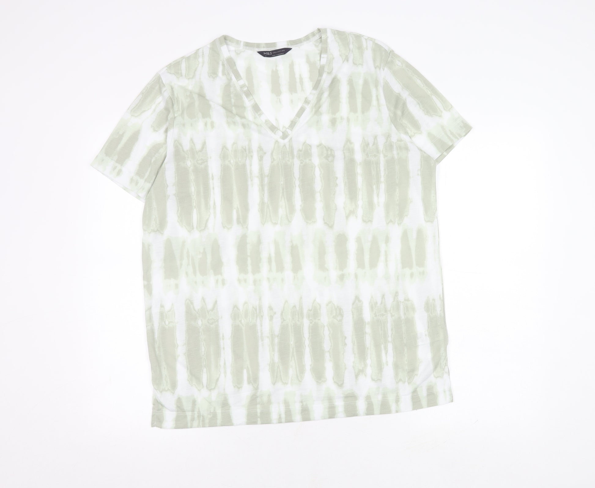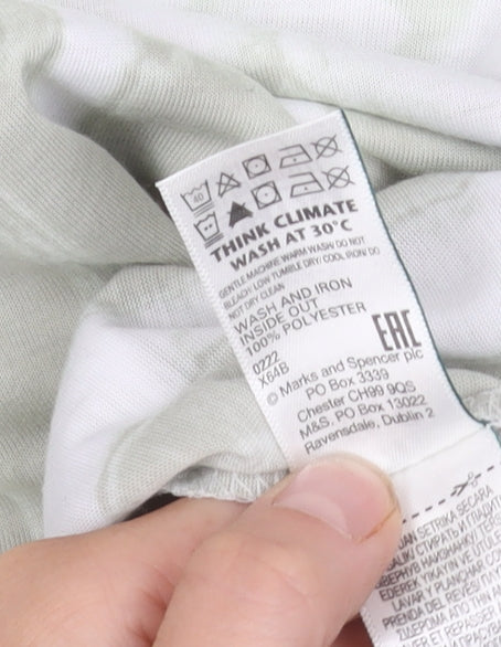 Explore effortless style with this Marks and Spencer women's T-shirt, perfect for casual outings and travelling. Featuring a trendy V-neckline, this short-sleeve top is crafted from a comfortable blend of cotton and polyester, ensuring a lightweight feel for all-day wear. The soothing green hue adds a refreshing twist to your wardrobe, versatile enough to pair with your favourite jeans or shorts. Designed for regular fit and fashioned as a basic style, this T-shirt is an essential addition to your collection. Machine washable for easy maintenance, enjoy the timeless simplicity and functionality that Marks and Spencer is renowned for. Ideal for both casual and travel occasions, this top seamlessly blends practicality and elegance to offer you a go-to piece for every season.