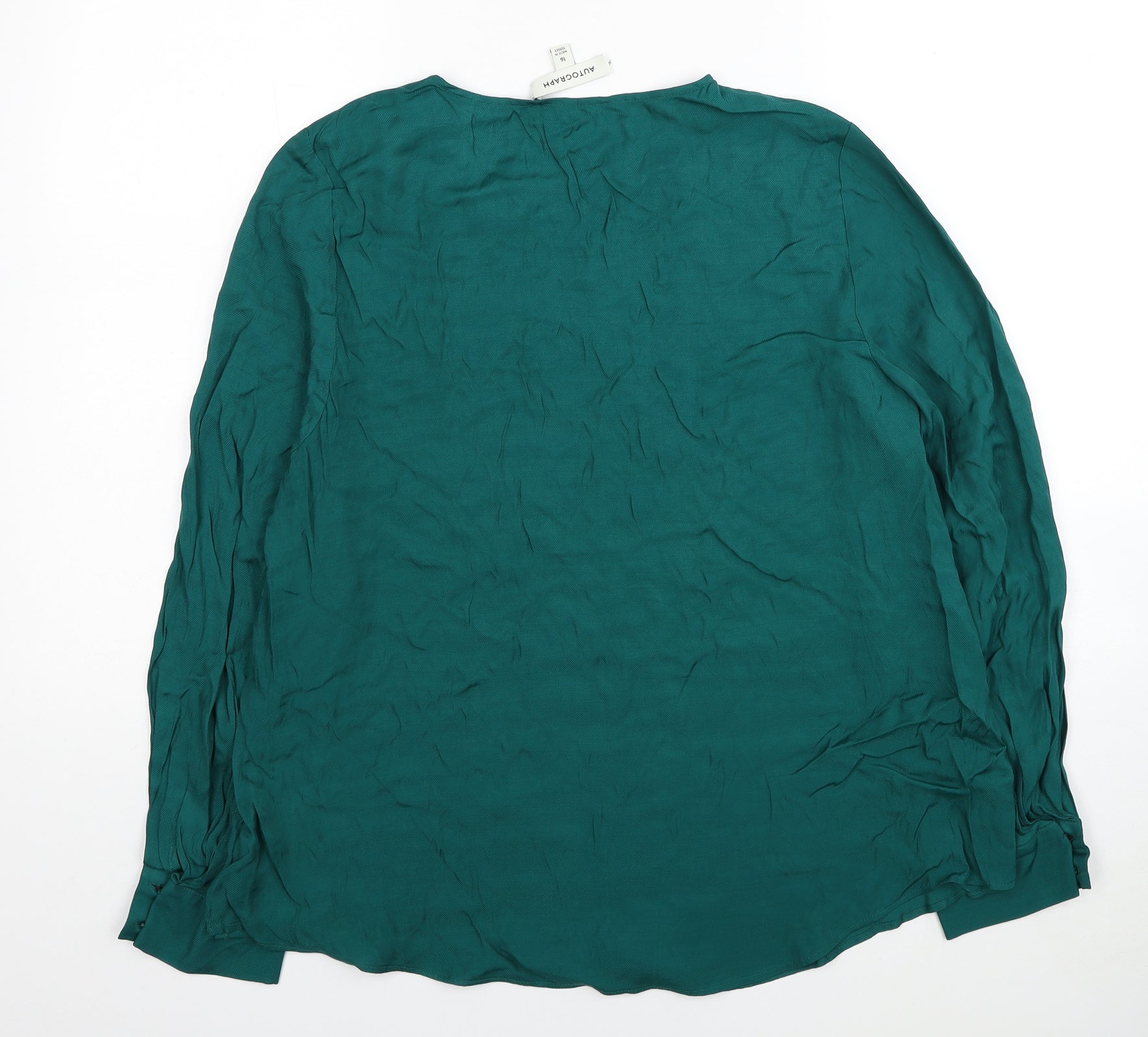 Womens Green Viscose Basic Blouse Size 16 Round Neck