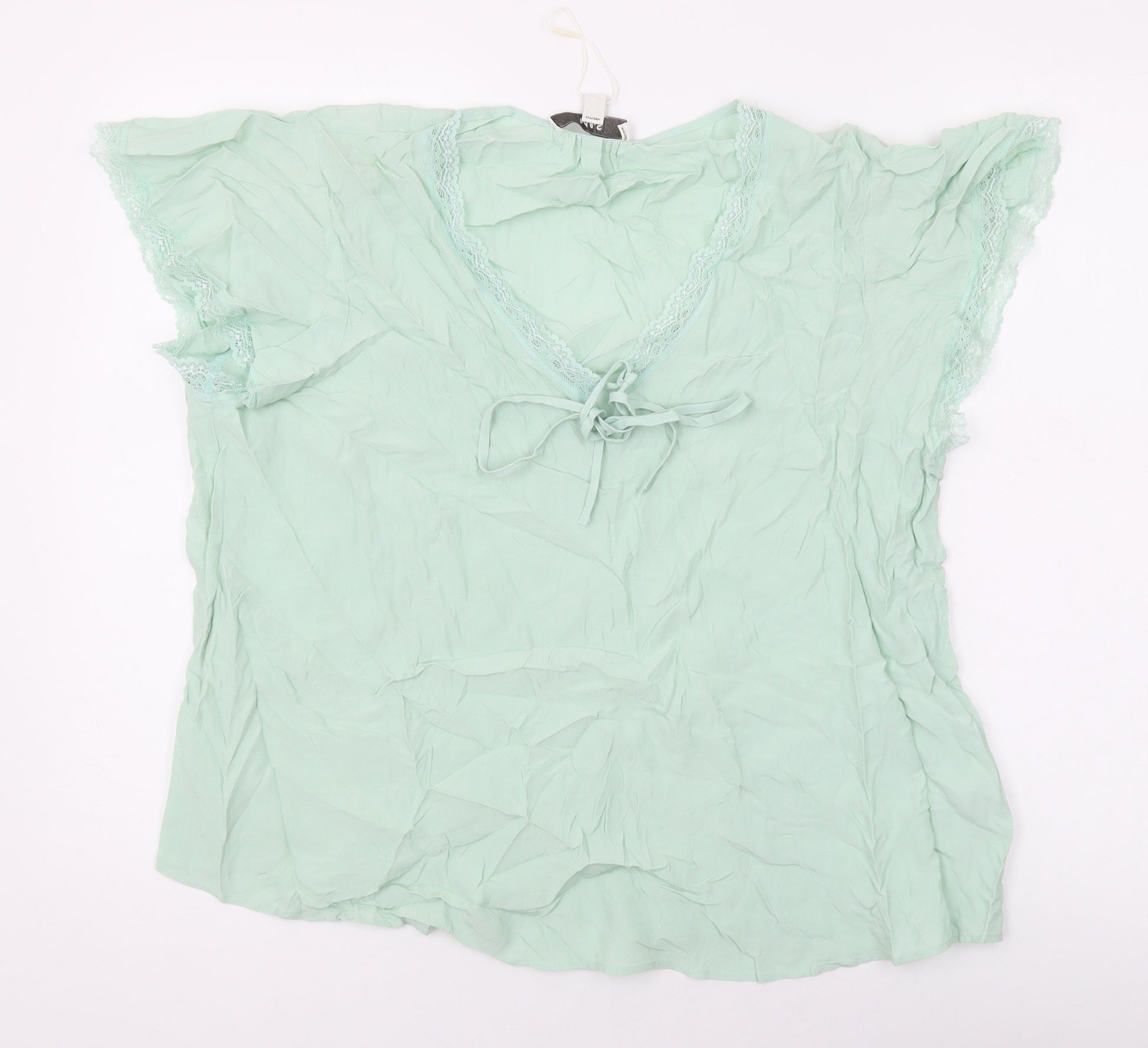 Womens Green Viscose Basic Blouse Size 16 V-Neck