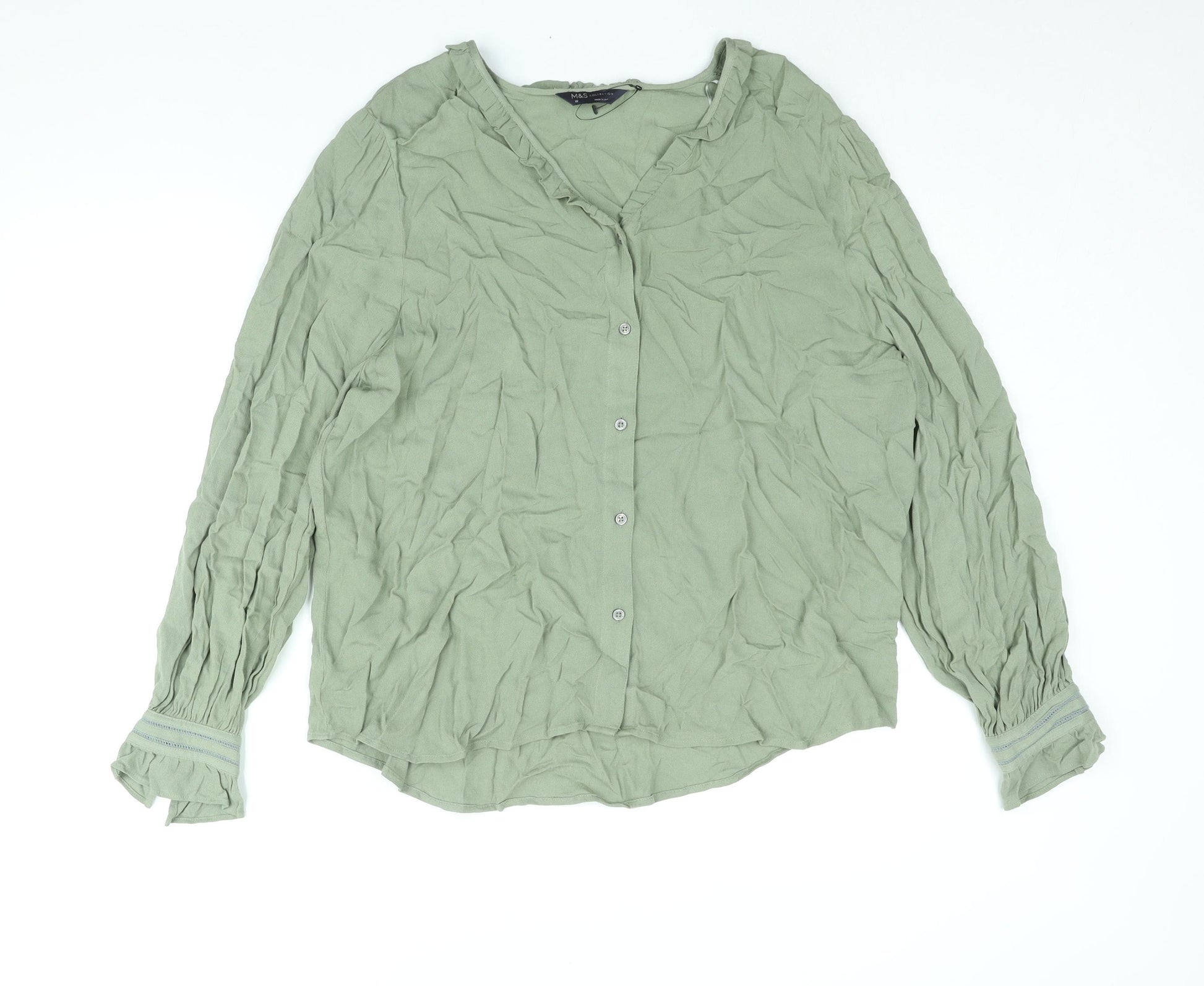 Womens Green Viscose Basic Blouse Size 18 V-Neck - Frill