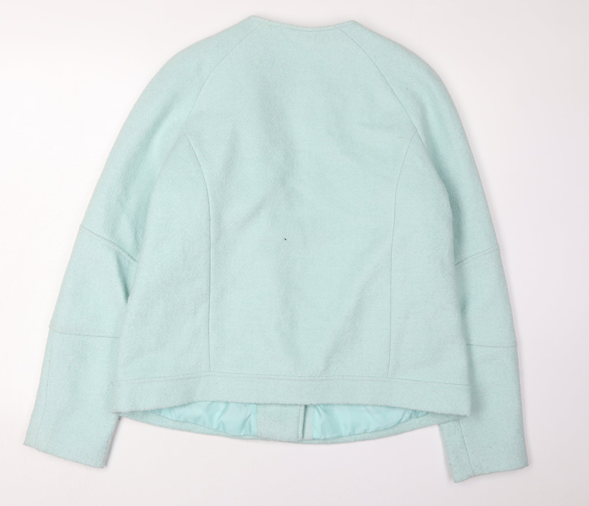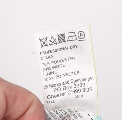 Elevate your wardrobe with this sophisticated Marks and Spencer jacket, designed for stylish women who appreciate both comfort and elegance. Crafted from a luxurious blend of 76% polyester and 24% wool, the jacket ensures warmth and durability, making it perfect for the winter season. Its elegant green hue adds a fresh touch to your attire, while the regular fit and full zip closure offer utmost convenience and versatility. The jacket features a mid-length design that pairs well with any ensemble, making it an excellent choice for casual occasions. It comes fully lined with polyester, ensuring a comfortable wear all day long. Despite being previously owned, this jacket remains in 'Very Good' condition, with only minor signs of light wear visible. This timeless piece promises to be a staple in your collection, ideal for layering over your favourite outfits. Don't miss the chance to own this stylish jacket that combines functionality with refined style.