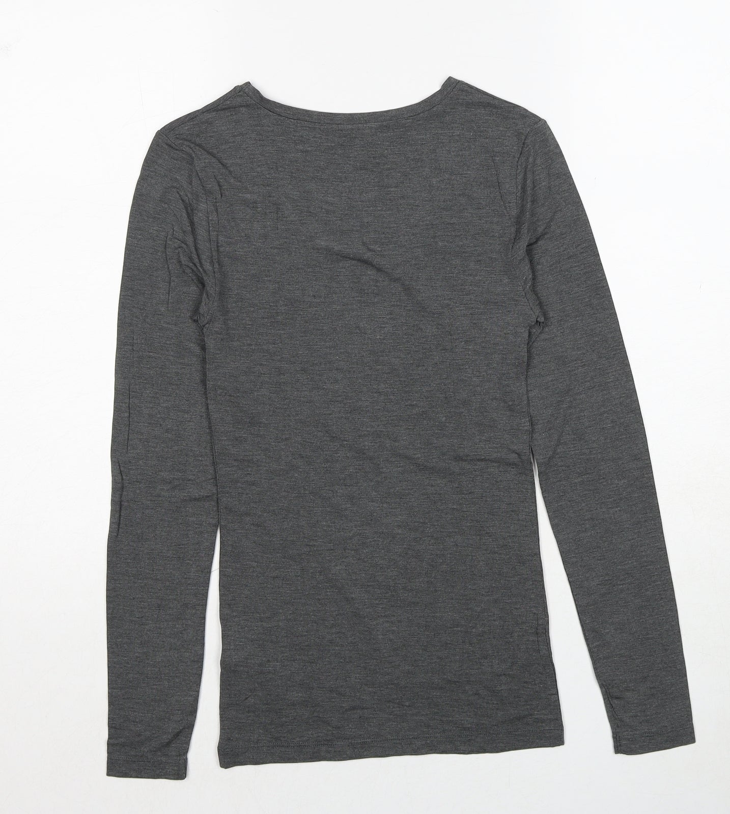Womens Grey Acrylic Basic T-Shirt Size 8 Scoop Neck