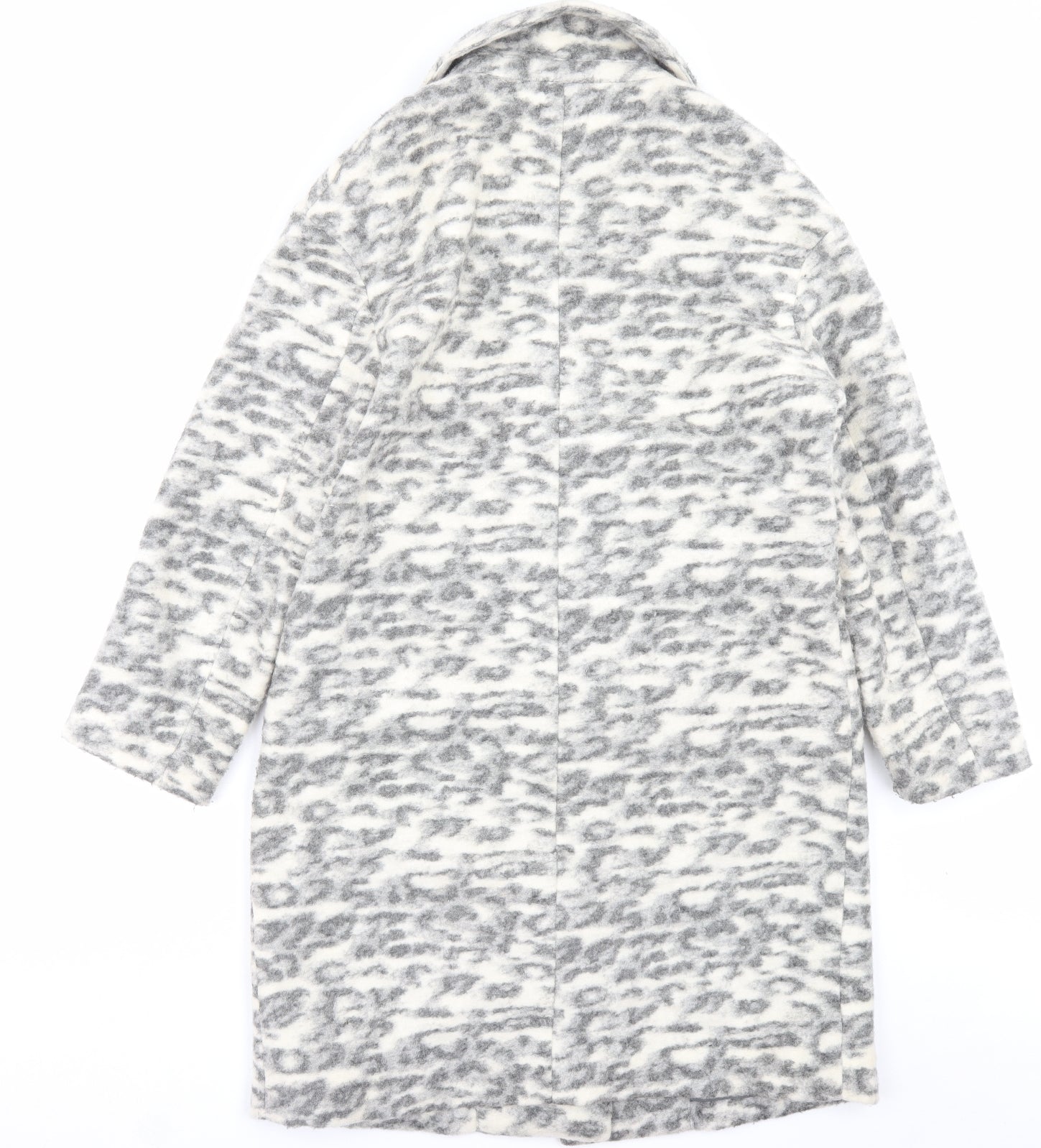 Womens Grey Animal Print Overcoat Coat Size 12 Button