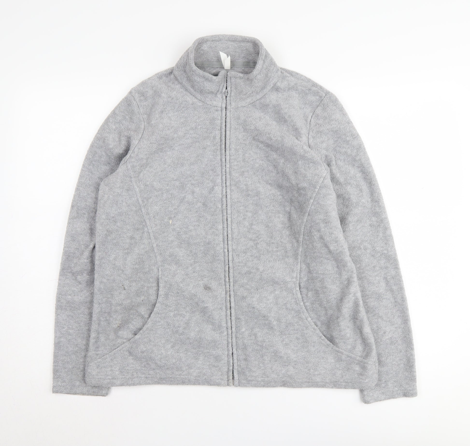 Stay warm and stylish with this Marks and Spencer women's grey fleece jacket, perfect for the cooler seasons. Crafted from soft polyester, this basic jacket offers comfort and simplicity with its full zip closure, while the regular fit ensures it's ideal for layering over your favourite outfits. The jacket features long sleeves and a mid-length design, making it suitable for casual occasions. The grey tone gives it a versatile look that pairs effortlessly with any wardrobe choice. Practical and machine washable, it’s easy to care for, so you can enjoy its cosy embrace day after day. Despite minor wear, it’s in excellent condition, offering you both style and savings. A must-have addition for those chilly autumn and winter days, this fleece jacket promises warmth without compromising on fashion. Don't miss out on this comfortable, classic piece from a trusted brand.