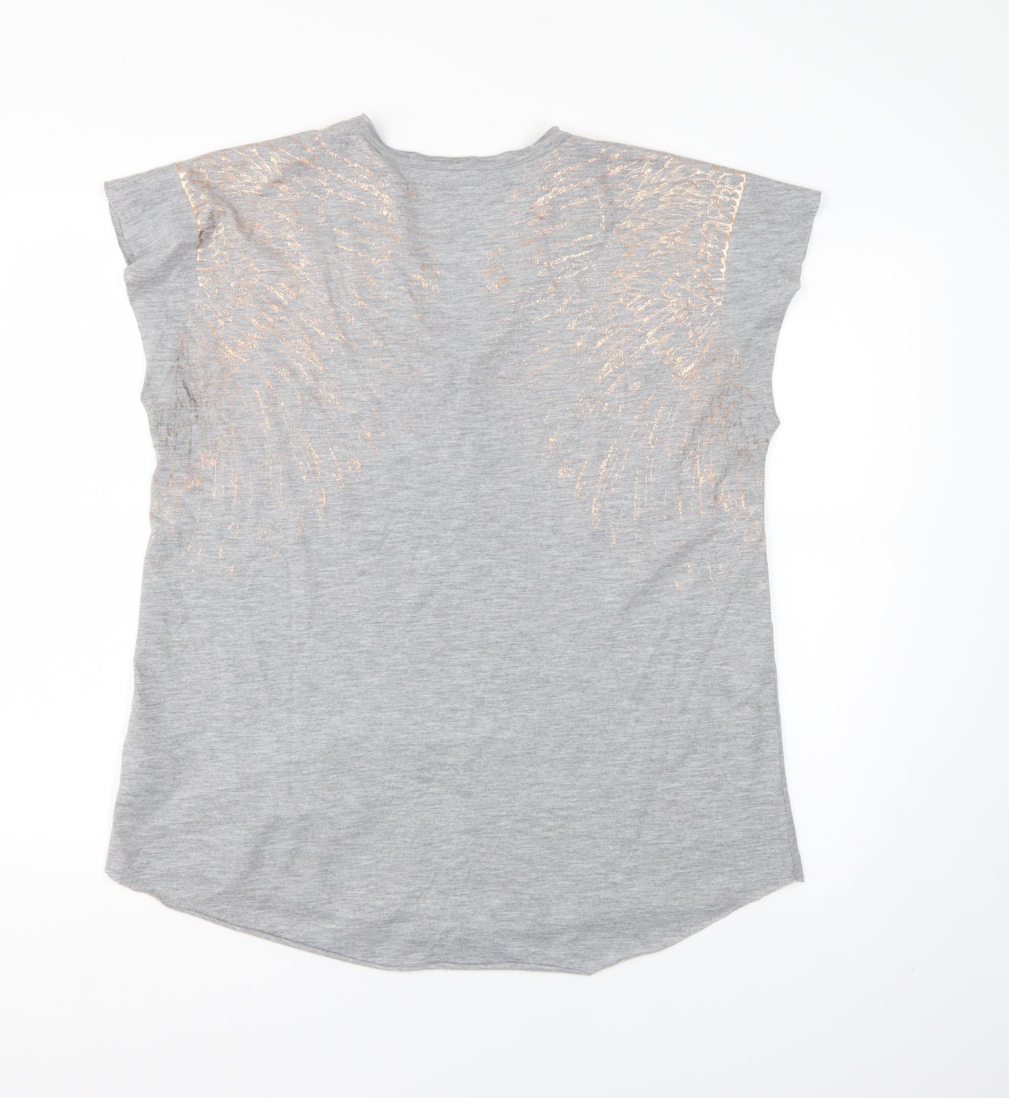 Marks and Spencer Womens Grey Floral Sleeve Cotton T-Shirt Size 14