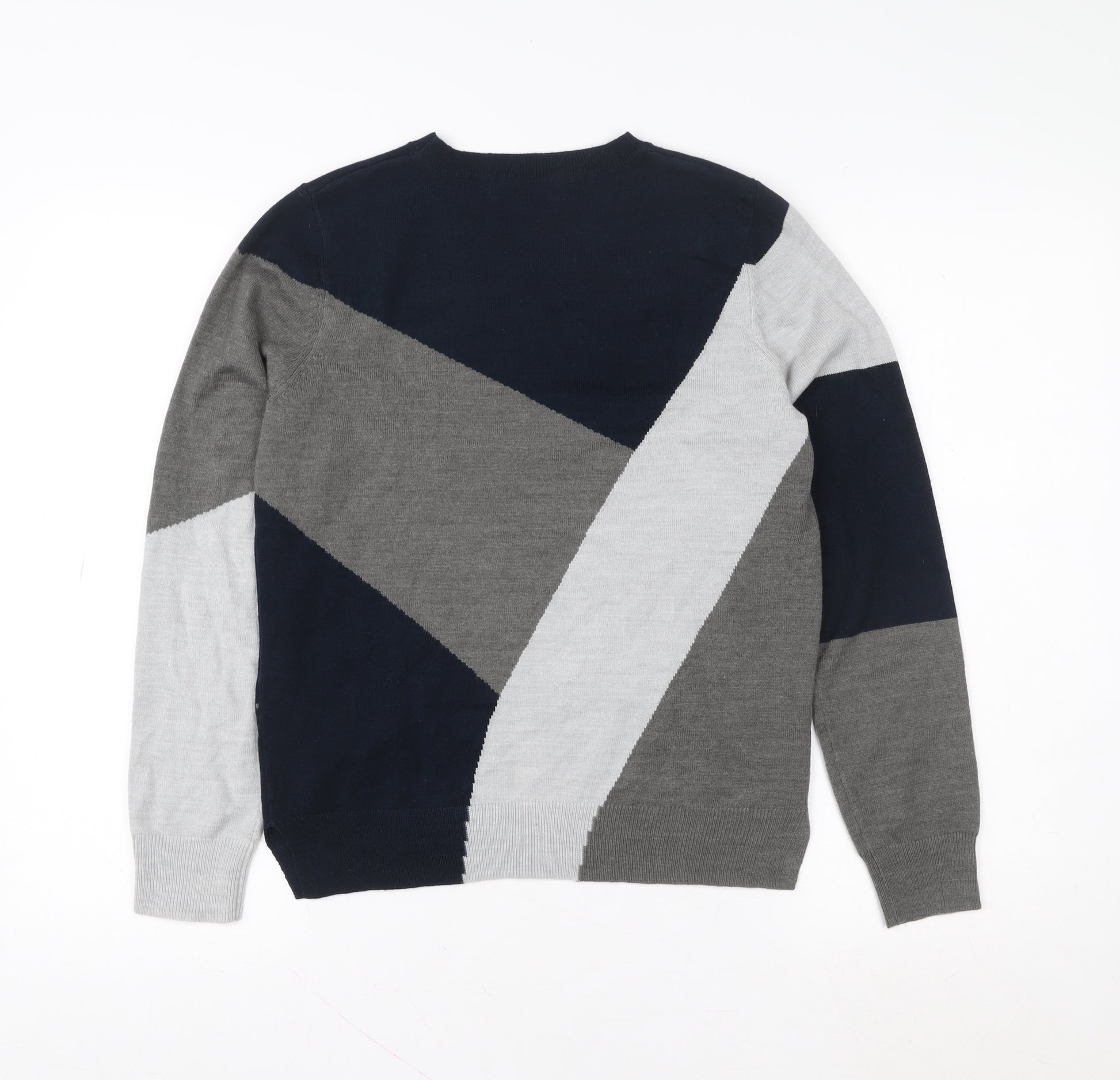 Womens Grey Blue Geometric Crew Neck Pullover Size 10
