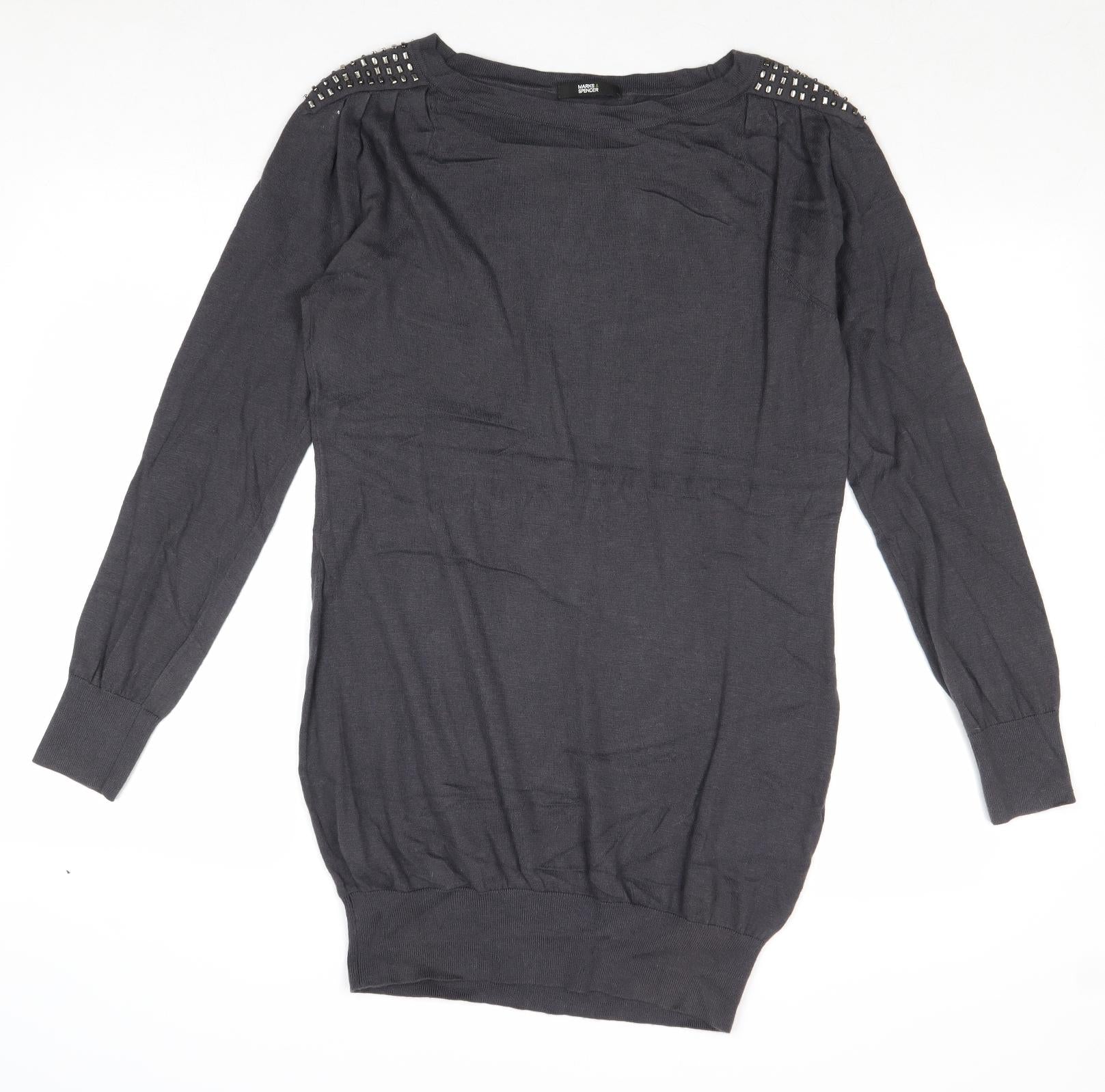 Womens Grey Boat Neck Cotton Tunic Jumper Size 12