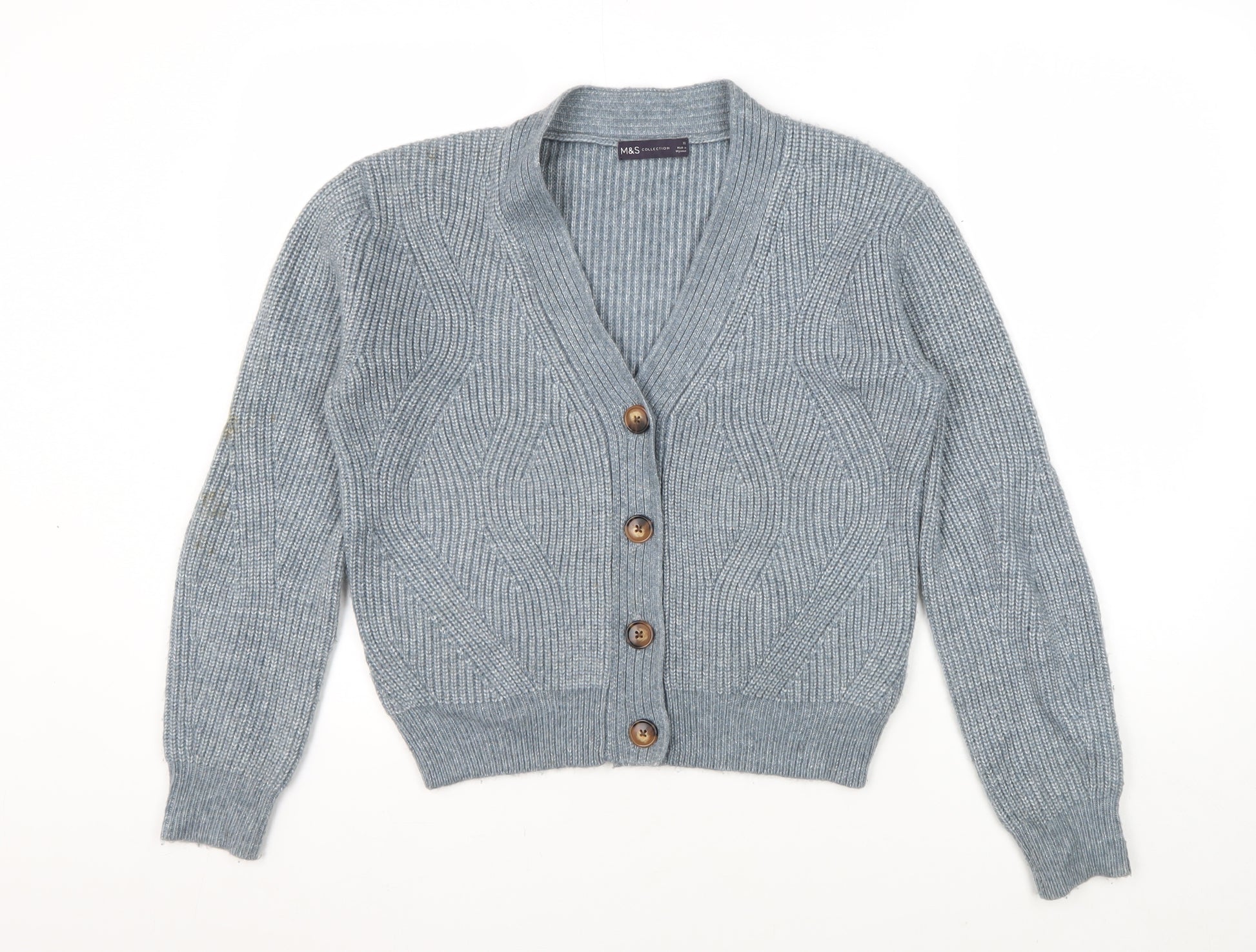 Discover comfort and style with this Marks and Spencer women's cardigan, perfect for adding elegance to your casual wardrobe. Crafted for those who appreciate quality, this cardigan comes in a sophisticated grey shade that effortlessly complements various outfits. Its V-neckline and button accents offer a classic touch while ensuring versatility for different occasions.Designed in a size XS, this cardigan promises a perfect fit for a chic silhouette. The cable-knit design not only brings a textured appeal but also adds warmth, making it an ideal choice as the seasons transition. The long sleeves ensure you stay cosy, while the material blend of polyester, acrylic, and polyamide assures a soft, durable wear.Whether you're planning a relaxed day out or a casual meet-up with friends, this cardigan fits seamlessly into your fashion plans. The M&S label is synonymous with quality, ensuring you get lasting wear from this piece. Light wear is evident, but it bears no original sales tags, marking it in very good condition – perfect for those who value both style and smart shopping.Easy care instructions mean you can confidently hand wash this cardigan, maintaining its form and texture for seasons to come. Add this chic, button-accented cardigan to your wardrobe today for a touch of sophistication and comfort that only Marks and Spencer can deliver.