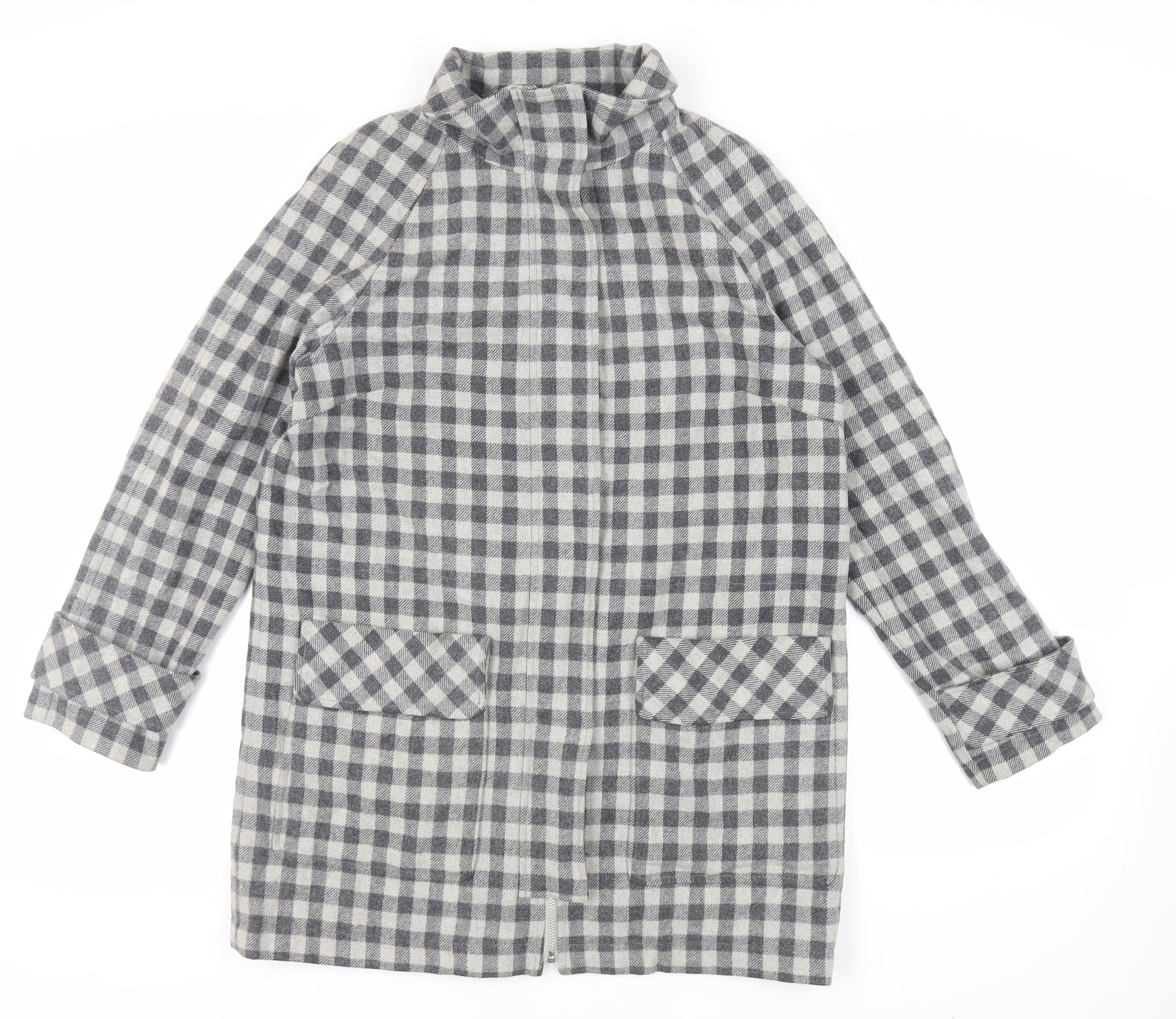 Womens Grey Check Overcoat Coat Size 14 Zip