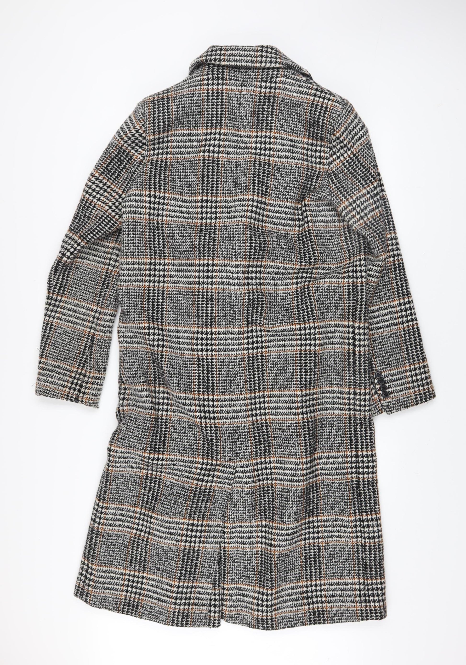 Womens Grey Check Wool Blend Long Coat Size 8