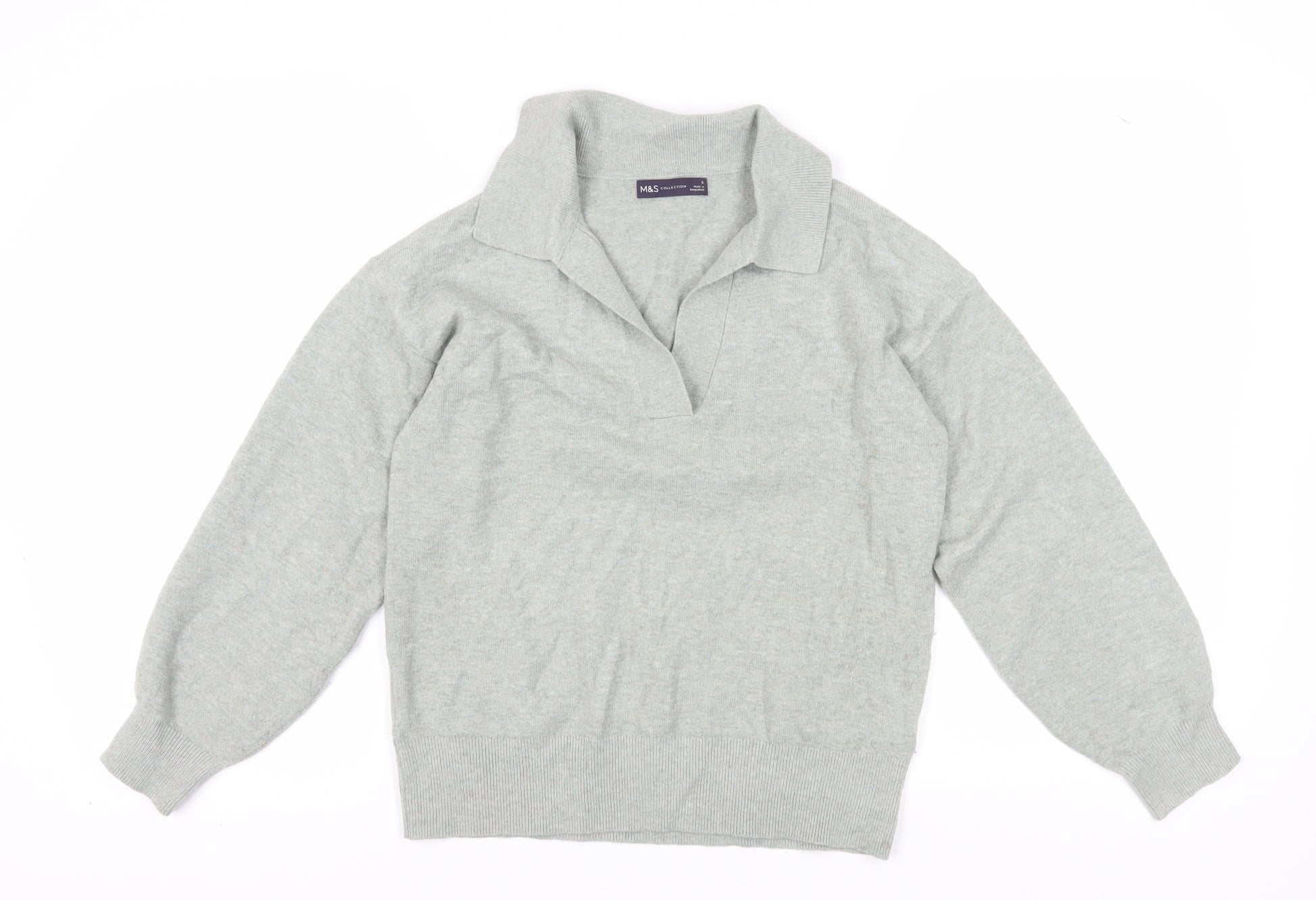 Upgrade your casual wardrobe with this sophisticated Marks and Spencer Women's Jumper in a versatile grey hue. Made from a high-quality blend of wool, polyester, and elastane, it ensures both comfort and durability. This lightweight knit jumper features a classic collared neckline and long sleeves, making it a stylish choice for everyday wear. It's tailored for a regular fit, offering a comfortable and flattering silhouette. Perfect for all seasons, this jumper is machine washable, making it easy to care for. Ideal for casual occasions, it pairs effortlessly with your favourite jeans or skirts for a chic and relaxed look. In excellent condition, it's ready to enhance your style. Don't miss out on this wardrobe essential!