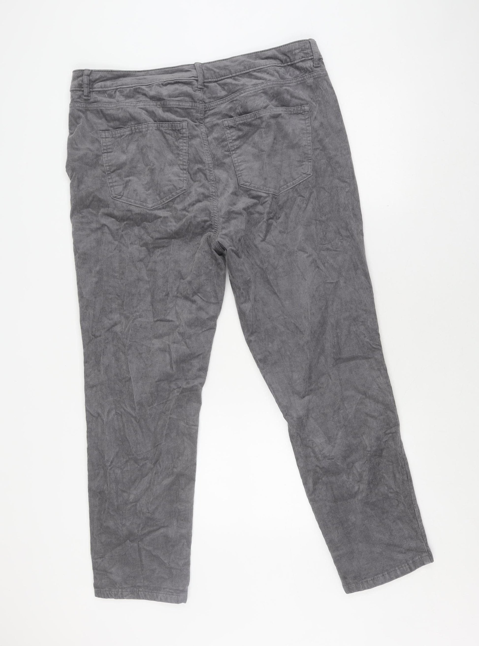 Elevate your wardrobe with these chic grey corduroy trousers from Marks and Spencer, designed for women who appreciate both comfort and style. Crafted from a durable blend of cotton, modal, and elastane, these trousers feature a flattering flat front and functional pockets, making them both stylish and practical for any casual outing. Available in a comfortable size 18, they promise to enhance your silhouette while offering the softness and stretch you expect from quality materials. Finished in a timeless grey, these trousers are versatile enough to pair with your favourite tops and shoes for a variety of occasions. Whether you're running errands or meeting friends for coffee, these trousers will keep you comfortably chic. With a subtle pattern and excellent condition, they represent a fantastic addition to any wardrobe, ready to enjoy the moment you slip them on.