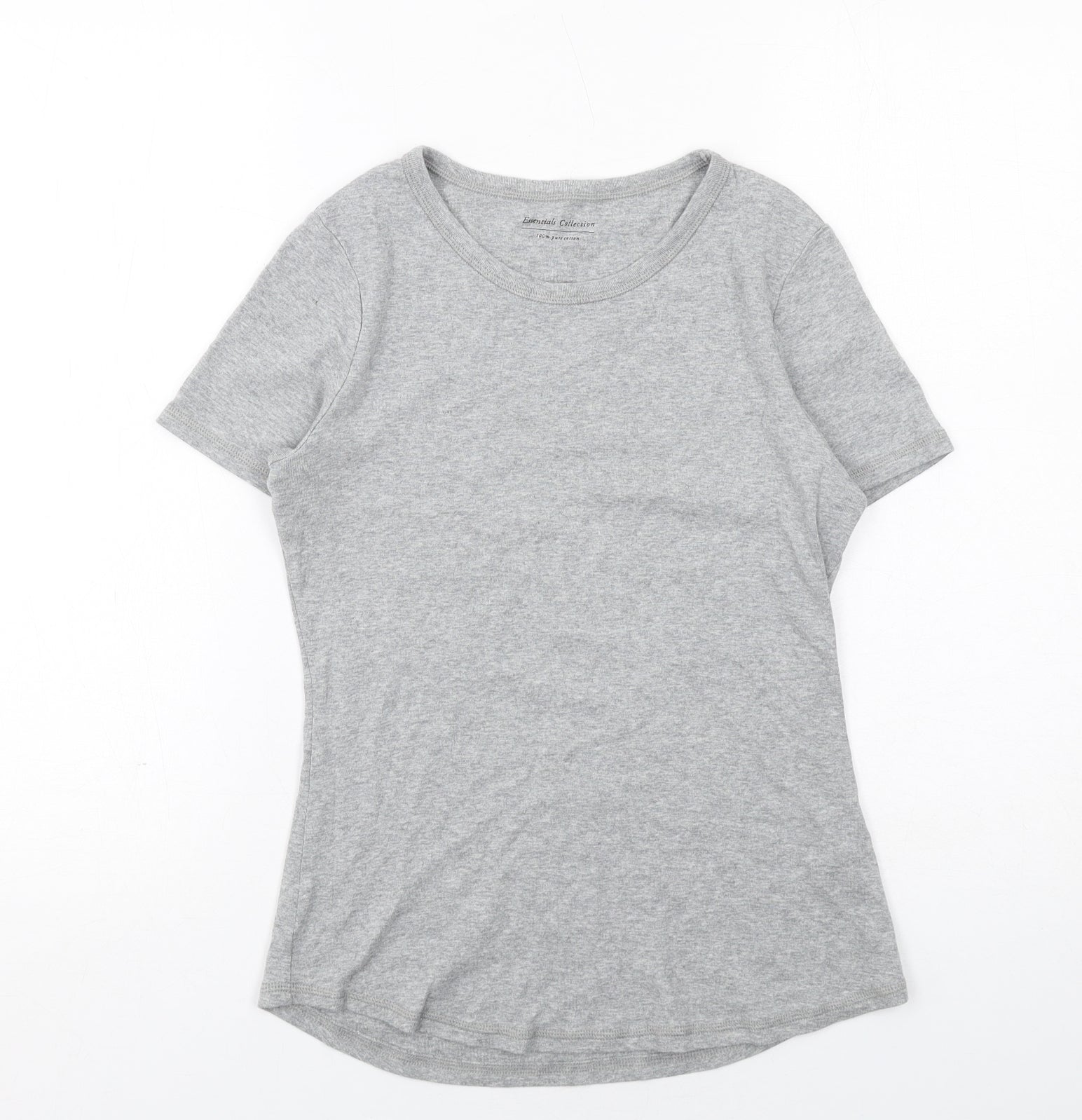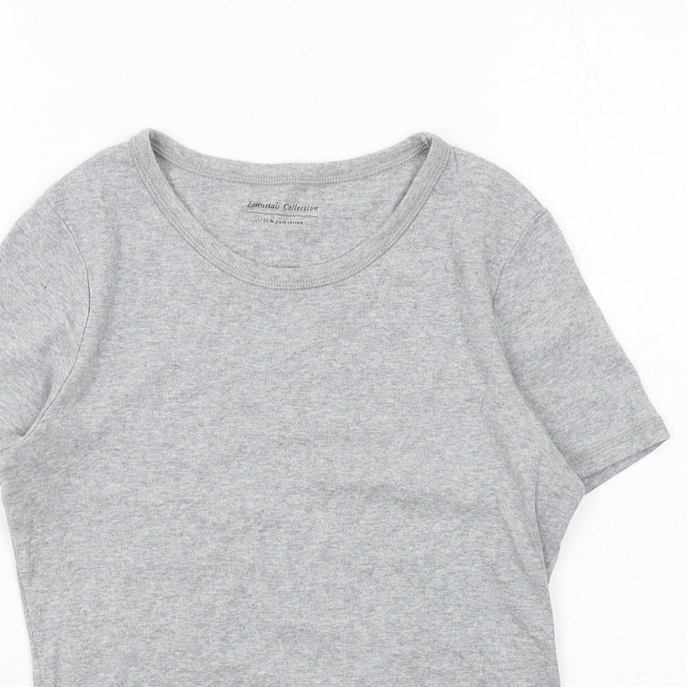 Womens Grey Cotton Basic T-Shirt Size 12 Round Neck