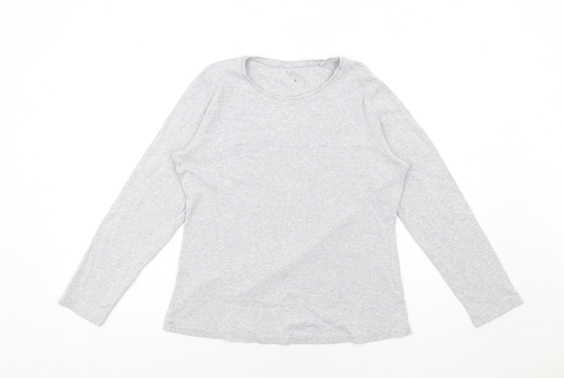 Womens Grey Cotton Basic T-Shirt Size 14 Round Neck