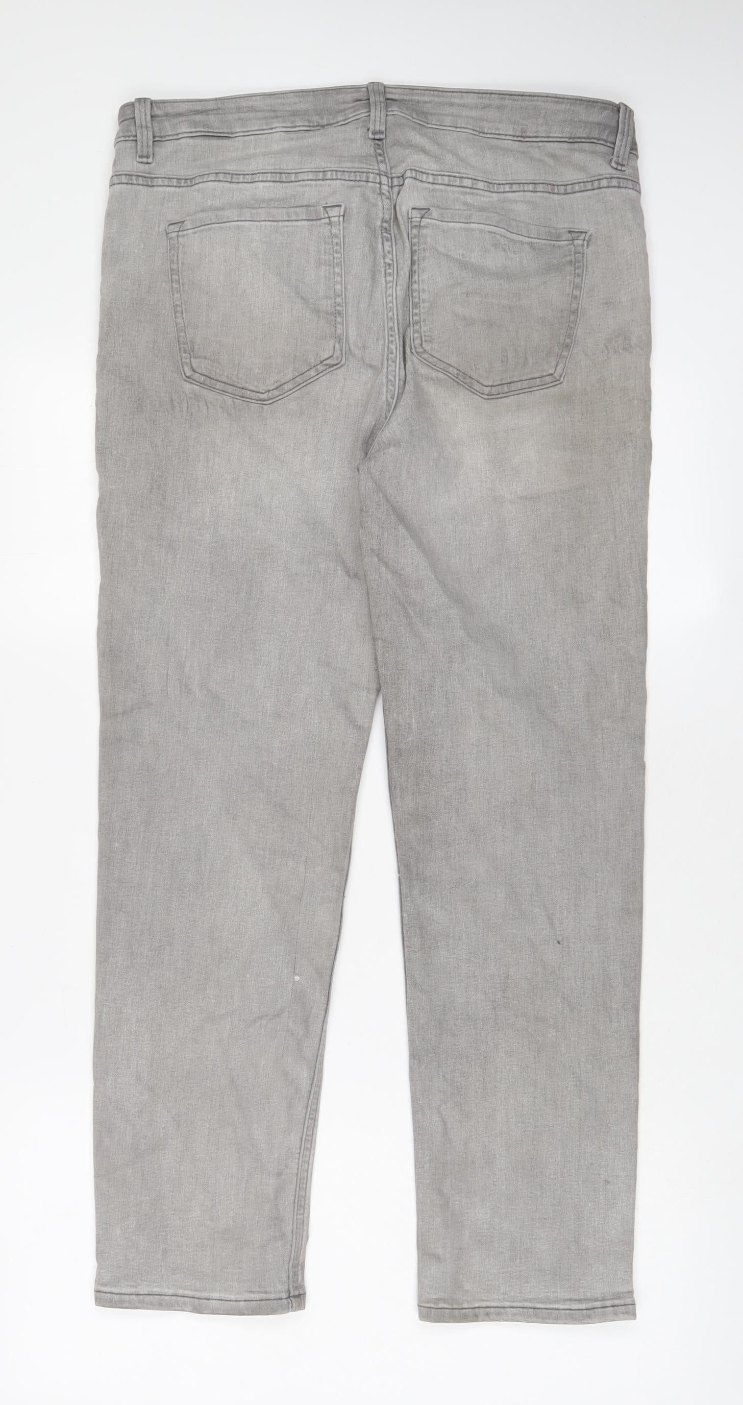 Womens Grey Cotton Straight Jeans Size 14 L27 in Regular Zip