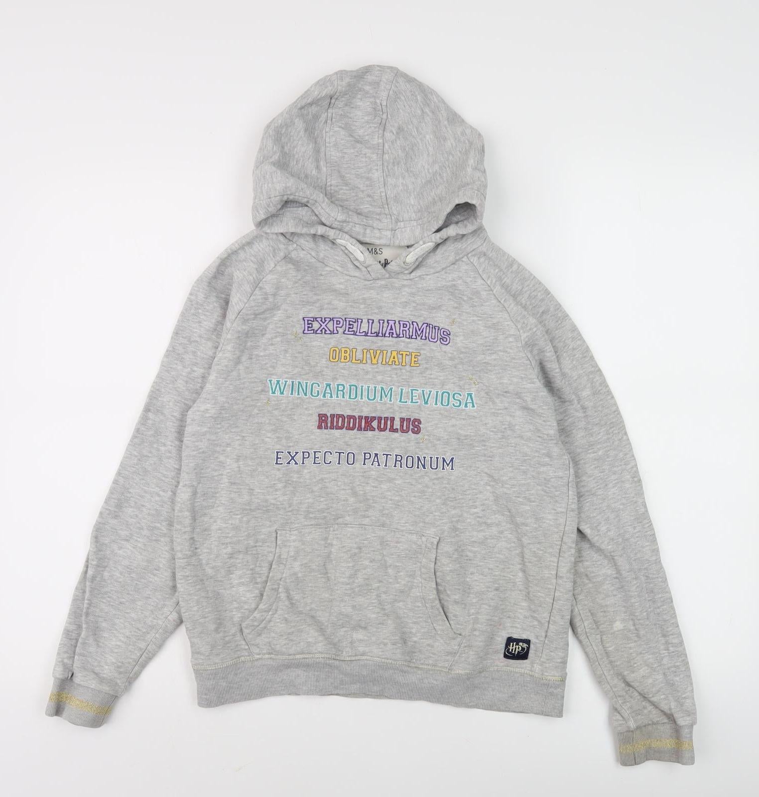 Elevate your casual wardrobe with this charming Women's Grey Harry Potter Hoodie by Marks and Spencer. Designed in a comfortable pullover style, this hoodie combines the magic of Harry Potter with everyday functionality. Crafted from a soft jersey blend of cotton and polyester, it provides cosy warmth perfect for autumn and winter months. The hoodie features embroidered spell motifs, adding a touch of wizarding world charm. Its regular fit and long raglan sleeves offer relaxed comfort, while the classic crew neckline ensures effortless layering. With iconic Harry Potter themes, this hoodie is a must-have for fans and adds a whimsical twist to casual looks. Enjoy the practicality of machine washable material and embrace the adventure of Hogwarts every day.