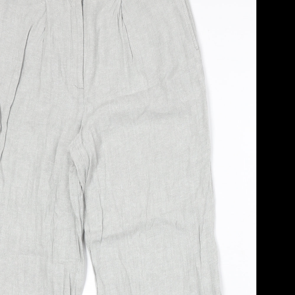 Womens Grey Linen Trousers Size 12 Regular Zip