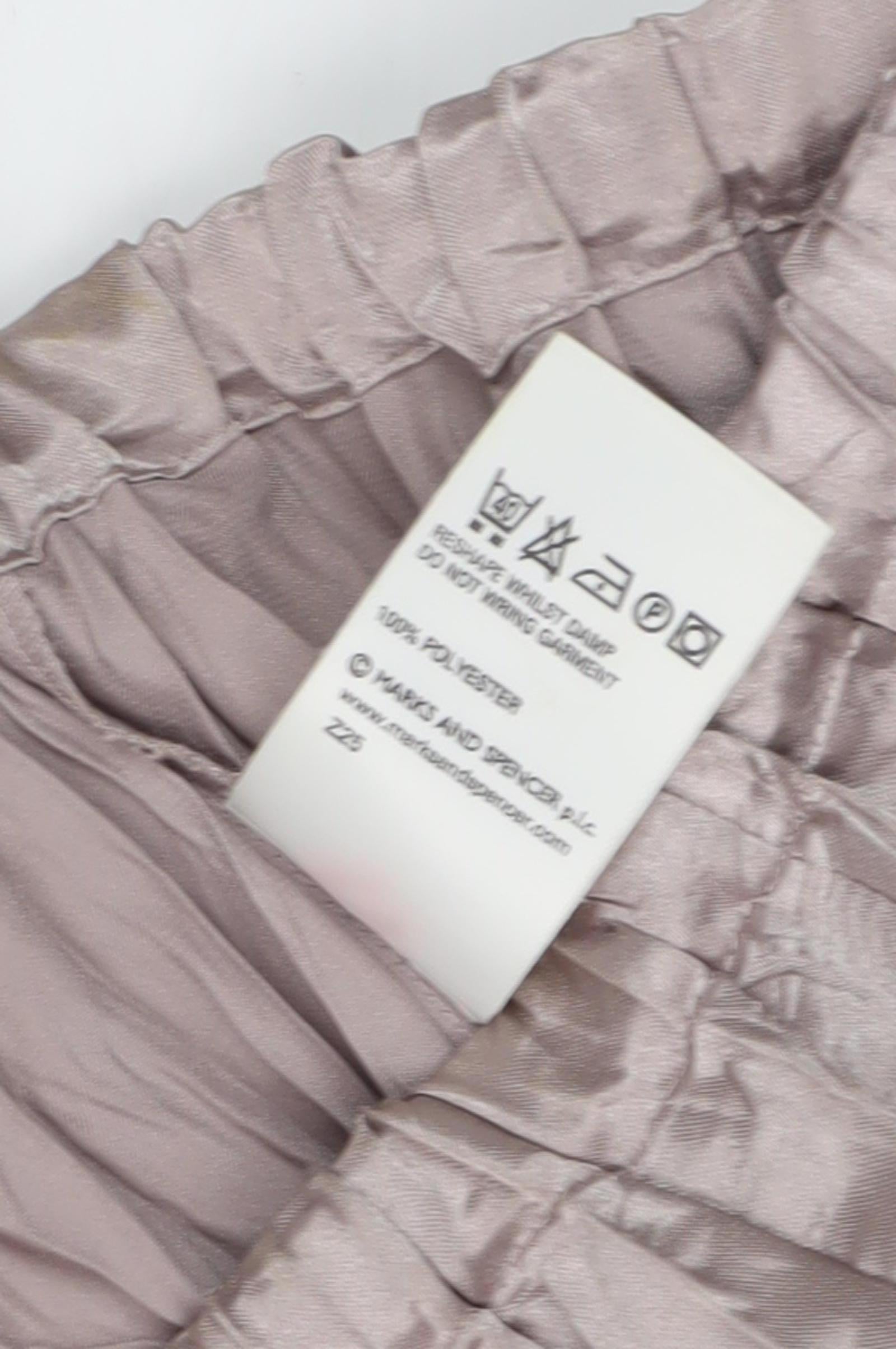 Elevate your wardrobe with this elegant Marks and Spencer women's pleated midi skirt. Crafted from high-quality polyester, this grey skirt offers both style and comfort. The pleated design delivers a timeless appeal, perfect for any occasion, from casual outings to sophisticated gatherings. Ideal for embracing a classic look, this piece is a must-have for the fashion-forward woman. It is machine washable, ensuring easy care and longevity. In excellent condition with no visible defects, it's ready to enhance your style effortlessly.