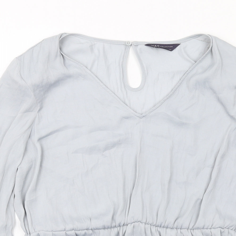 Marks and Spencer Women Grey Size 14 V-Neck Relaxed Knit Blouse