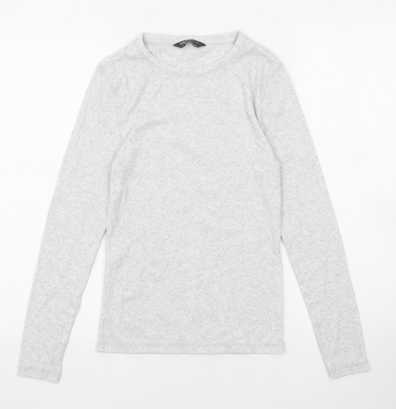 Womens Grey Polyester Basic T-Shirt Size 8 Round Neck