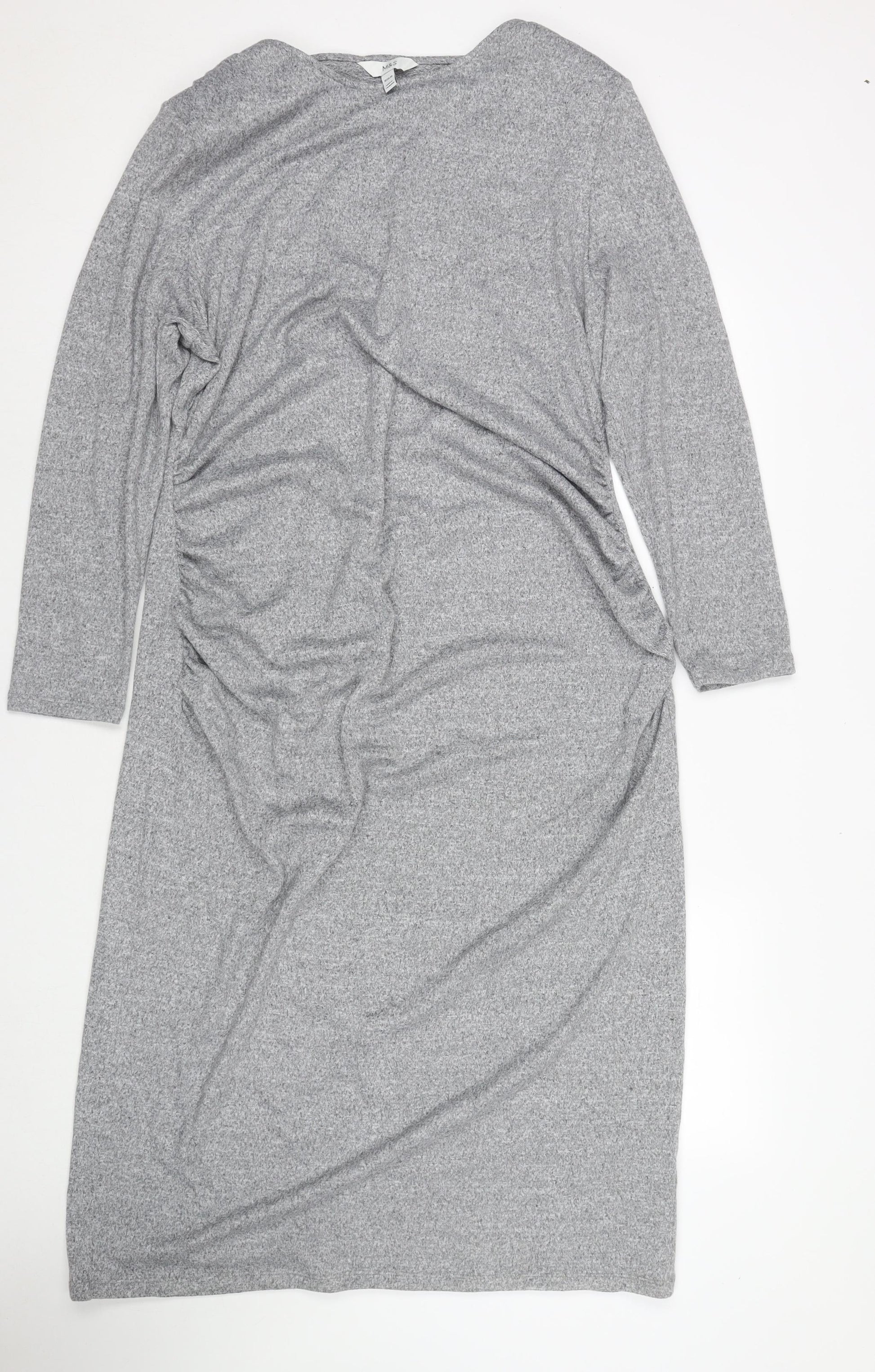Womens Grey Polyester Jumper Dress Size 18 Round Neck Pullover
