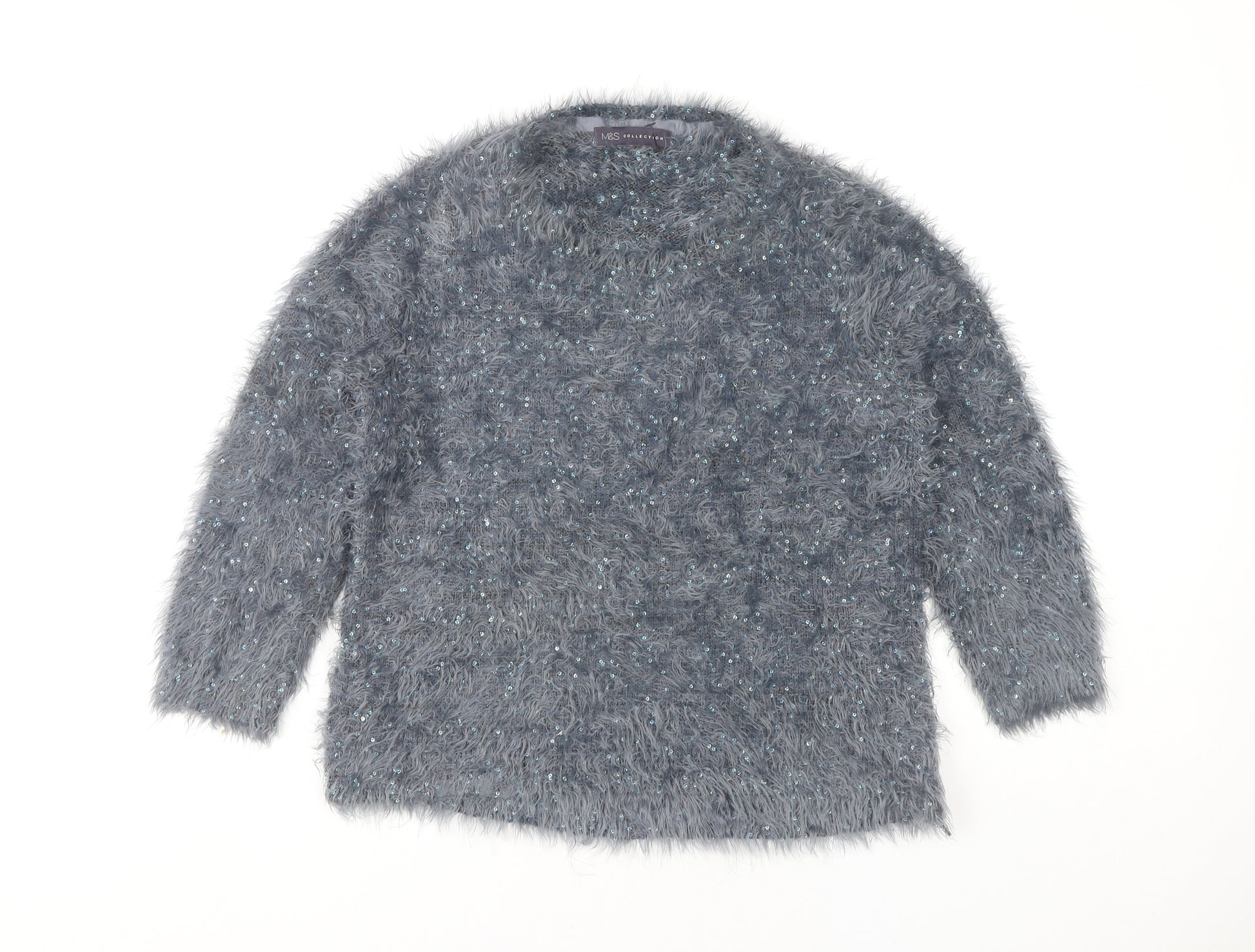 Discover the comfort and style of this Marks and Spencer women's pullover jumper. Crafted in a sophisticated grey shade, this long-sleeve jumper is designed for ultimate coziness and elegance. Made with a soft blend of polyester and polyamide, this garment offers lightweight warmth and a trendy appearance. Ideal for layering during chilly days, its versatile design effortlessly complements both casual and smart-casual outfits. Despite being in excellent condition, please note slight shedding, adding a unique texture to its look. Embrace this stylish piece, perfect for everyday wear and beyond. Machine washable for easy care, this jumper provides both comfort and fashion, making it a must-have addition to your wardrobe.