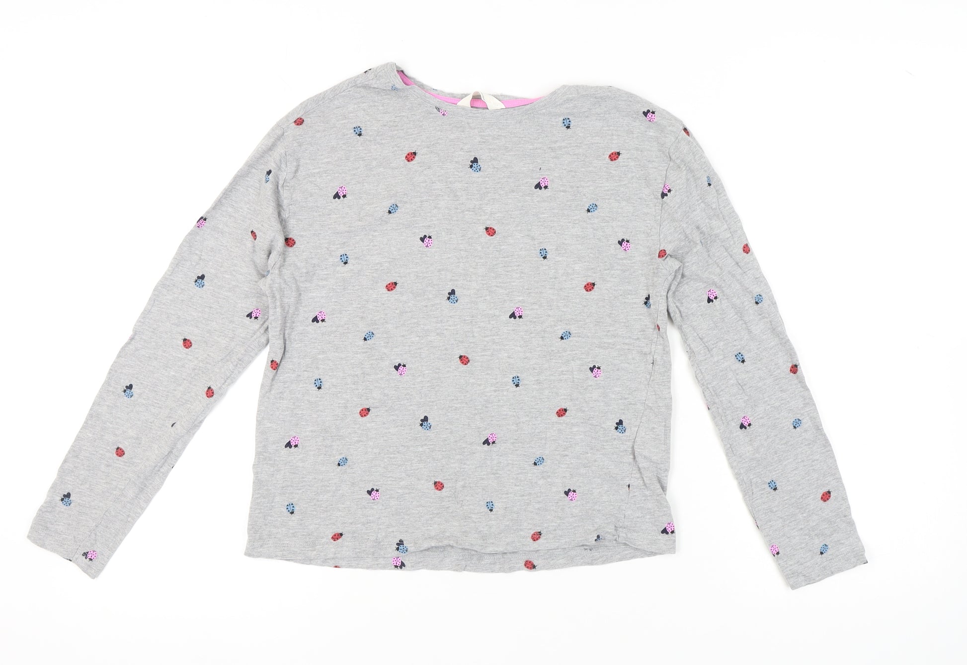 Discover the charm and comfort of this Marks and Spencer women's pyjama top. Crafted from a soft blend of 90% cotton and 10% viscose, it ensures a cosy night's sleep. The delightful ladybird graphic print adds a playful touch to this grey pyjama top, making it a delightful addition to your nightwear collection. Designed with a round neck and long sleeves, it's perfect for keeping warm during cooler nights. The light and breathable fabric enhances your comfort while sleeping or lounging. Marks and Spencer's quality craftsmanship ensures durability and long-lasting style. This top is machine washable for easy care and maintenance, ensuring you'll enjoy its comfort night after night. Perfect for anyone seeking cute yet practical sleepwear, this pyjama top promises relaxation with a splash of fun. Ideal for yourself or as a gift for a loved one, this piece is set to be a favourite in any wardrobe.