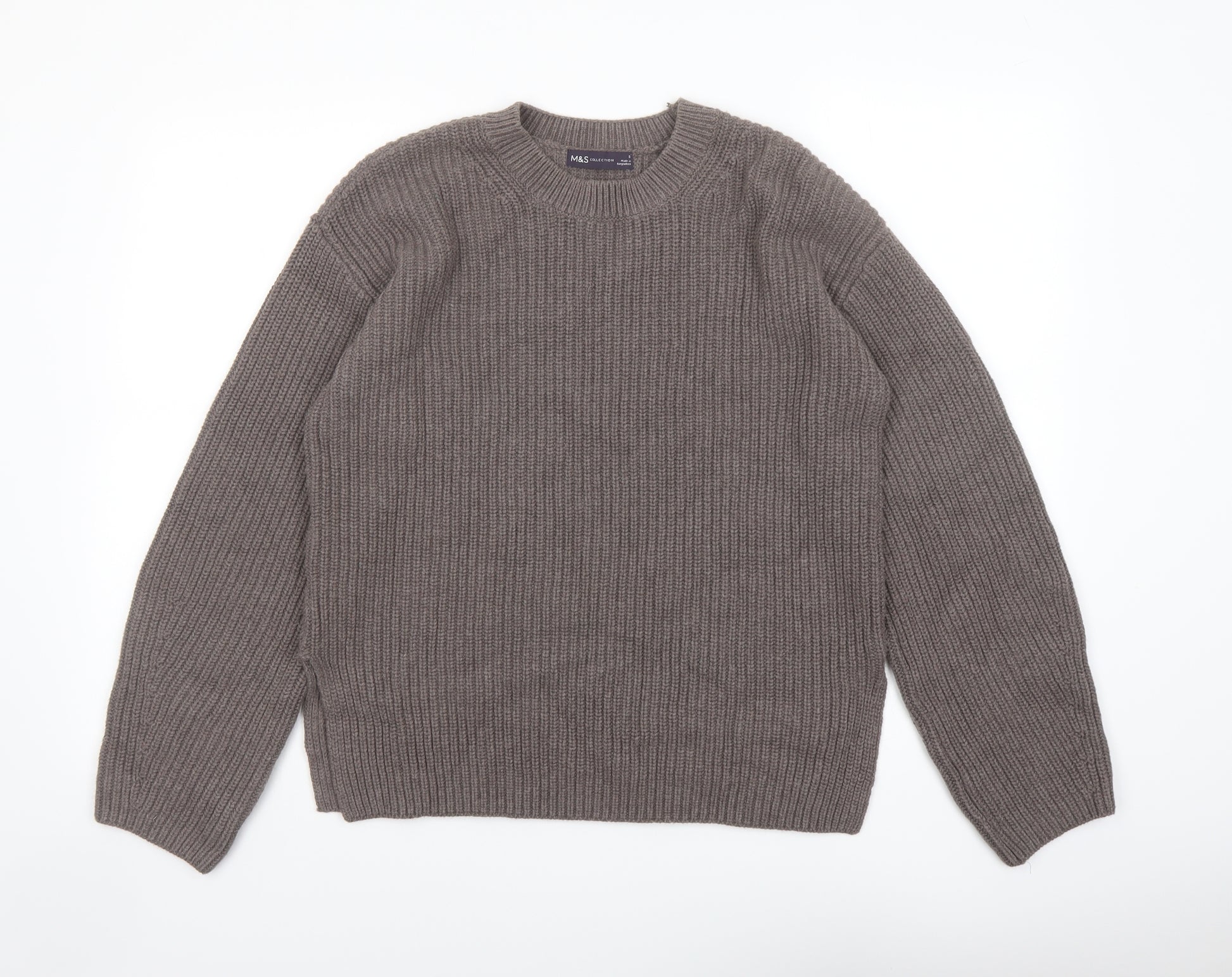 Womens Grey Round Neck Cotton Pullover Jumper Size S