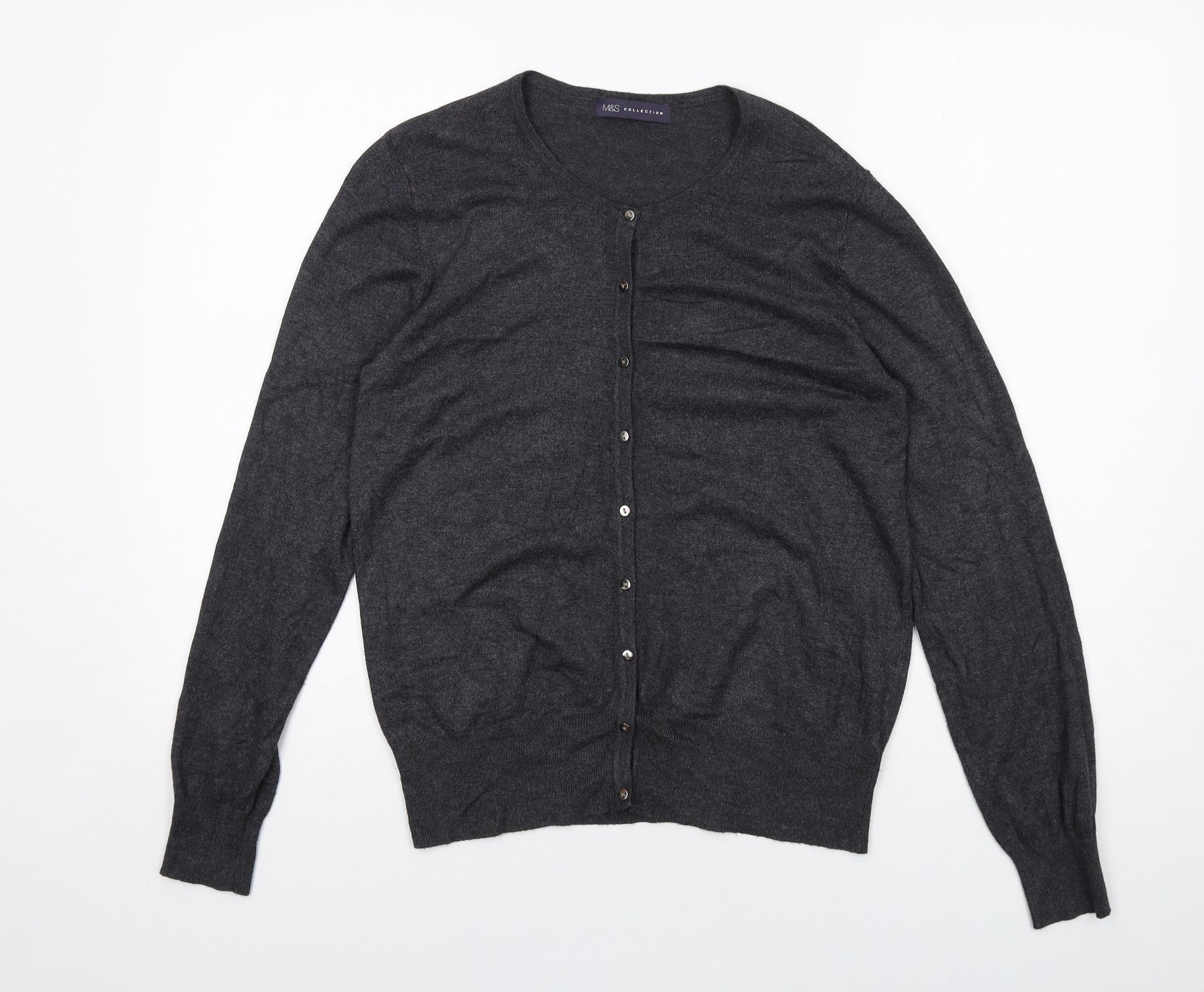 Womens Grey Round Neck Viscose Cardigan Jumper Size 14