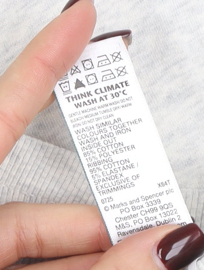 Stay comfortable and stylish with these Marks and Spencer women’s sweatpants, crafted from a soft and breathable jersey blend. Made for both leisure and light activity, these grey trousers feature a regular fit and straight leg cut, offering a relaxed silhouette that’s perfect for everyday wear. The soft fabric blend of 85% cotton, 15% polyester, and 5% elastane delivers a lightweight yet cosy feel, providing breathability and stretch for all-day comfort. Designed with an elasticated waistband and an adjustable drawstring, these trousers give you the freedom to shape the fit to your liking. The versatile grey shade is ideal for pairing with activewear tops, hoodies, or relaxed everyday T-shirts, making them a wardrobe staple for casual days, workouts, or travelling in comfort. Whether you’re running errands, practising yoga, or simply relaxing at home, these Marks and Spencer sweatpants offer the perfect balance of practicality and style. The machine-washable fabric ensures low-maintenance care, while the soft jersey texture enhances comfort. In excellent pre-owned condition, showing minimal signs of wear, these trousers demonstrate the quality associated with Marks and Spencer. If you value a blend of comfort, understated design, and versatile use, these women’s grey sweatpants are a great addition to your collection. Ideal for cooler days in spring or autumn, or even as cosy lounge trousers during transitional weather, their breathable cotton-based composition makes them suitable for year-round wear. Add them to your wardrobe for a timeless and comfortable piece designed to make relaxation or activity effortlessly stylish.