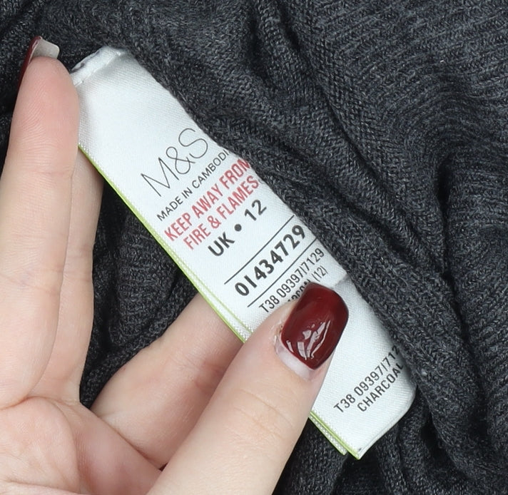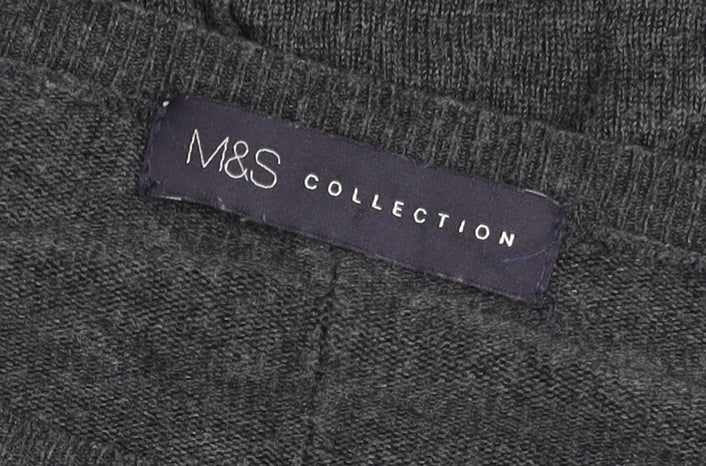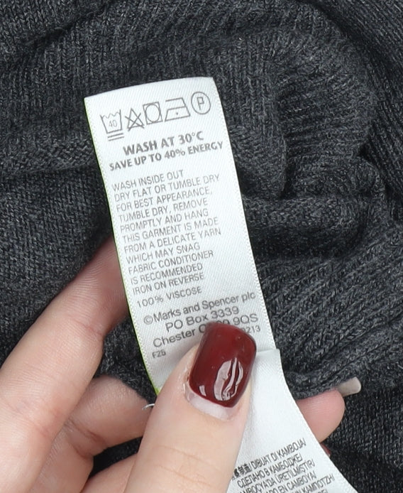 Elevate your everyday wardrobe with this versatile Marks and Spencer women's jumper. Crafted in a soft 100% viscose knit, this lightweight piece offers both comfort and effortless style. The elegant charcoal grey shade makes it an easy-to-style essential that pairs effortlessly with a wide range of outfits, from tailored trousers for a refined casual office look to laid-back jeans for relaxed weekends. Designed in a flattering relaxed fit, it ensures ease of movement and day-long comfort, ideal for women who appreciate both functionality and fashion. The piece features a classic crew neckline with subtle detailing along the centre seam, adding understated interest to this staple garment. Its dolman-style 3/4 length sleeves bring a contemporary touch while remaining practical, making it easy to layer under jackets or wear alone during milder seasons. The finely woven tight-knit construction ensures a smooth look, while the simple silhouette guarantees this will be a timeless addition to any wardrobe. Suitable for layering in autumn and winter or wearing solo in spring, this jumper has true year-round versatility. Machine washable and easy to care for, it suits a busy lifestyle while keeping its casual chic appeal. In very good condition, showing only light wear with some natural creasing to the fabric, this jumper has plenty more seasons of wear to offer. Marks and Spencer is known for dependable quality and timeless designs, and this piece is no exception. At a practical and stylish midweight, it’s easy to throw on for an instant polished look. A must-have item ideal for women looking for a blend of comfort, wearability, and understated style, this grey pullover is perfect for everyday wear while still refined enough to dress up when needed. A wardrobe classic you’ll reach for again and again.