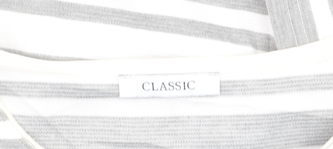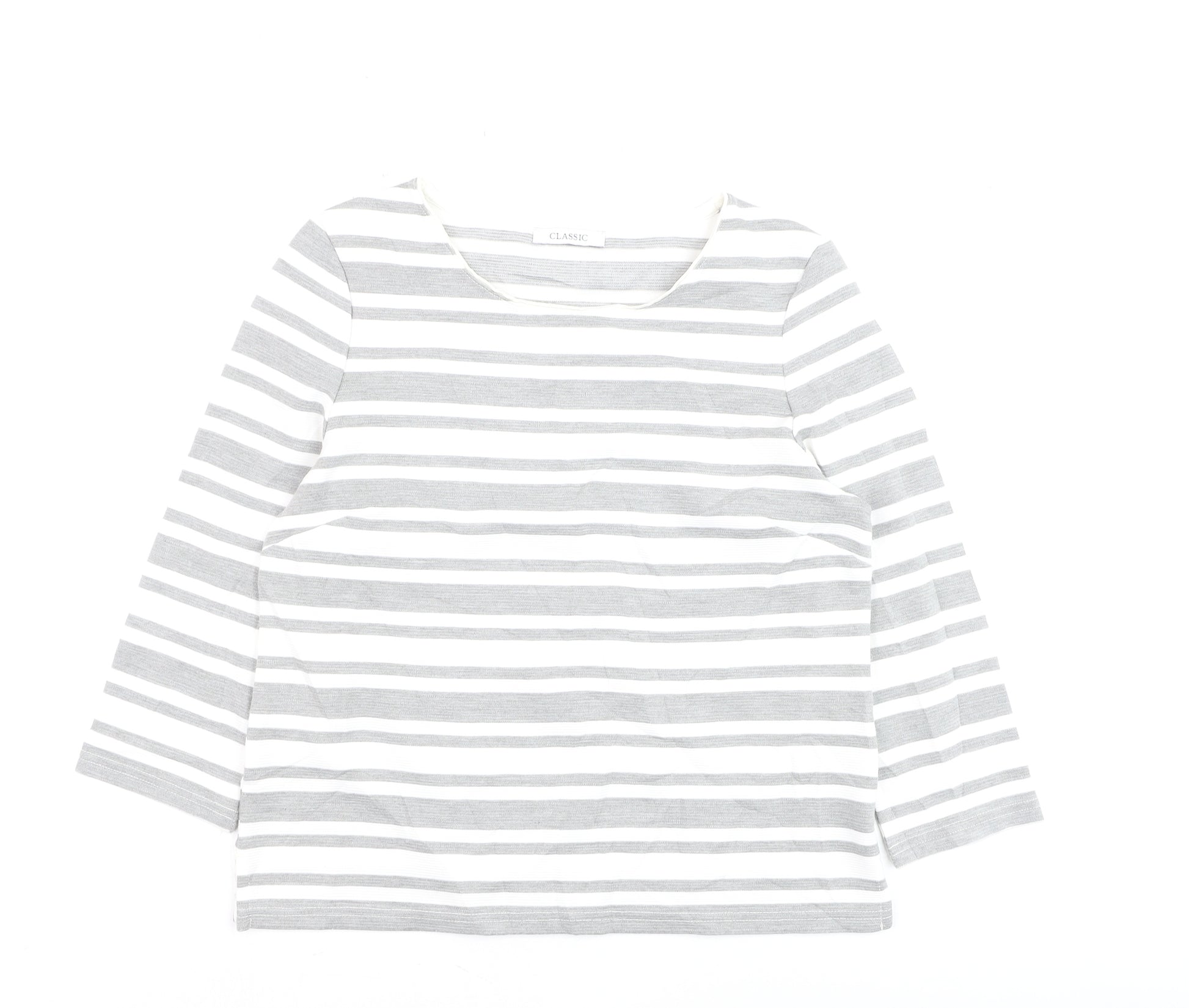 Womens Grey Striped 3/4 Sleeve Pullover Jumper Size 10