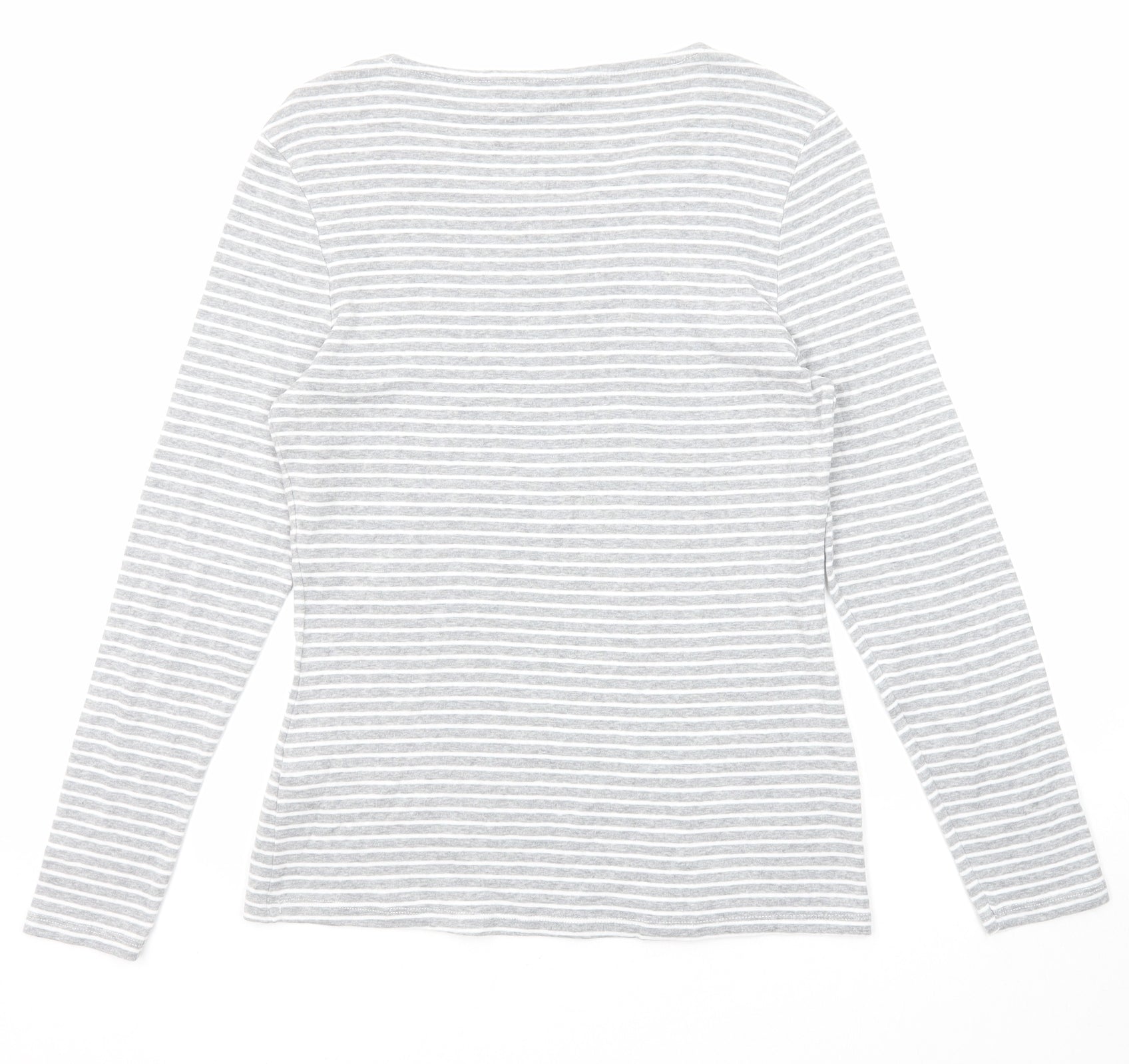 Womens Grey Striped Cotton Basic T-Shirt Size 14 Round Neck
