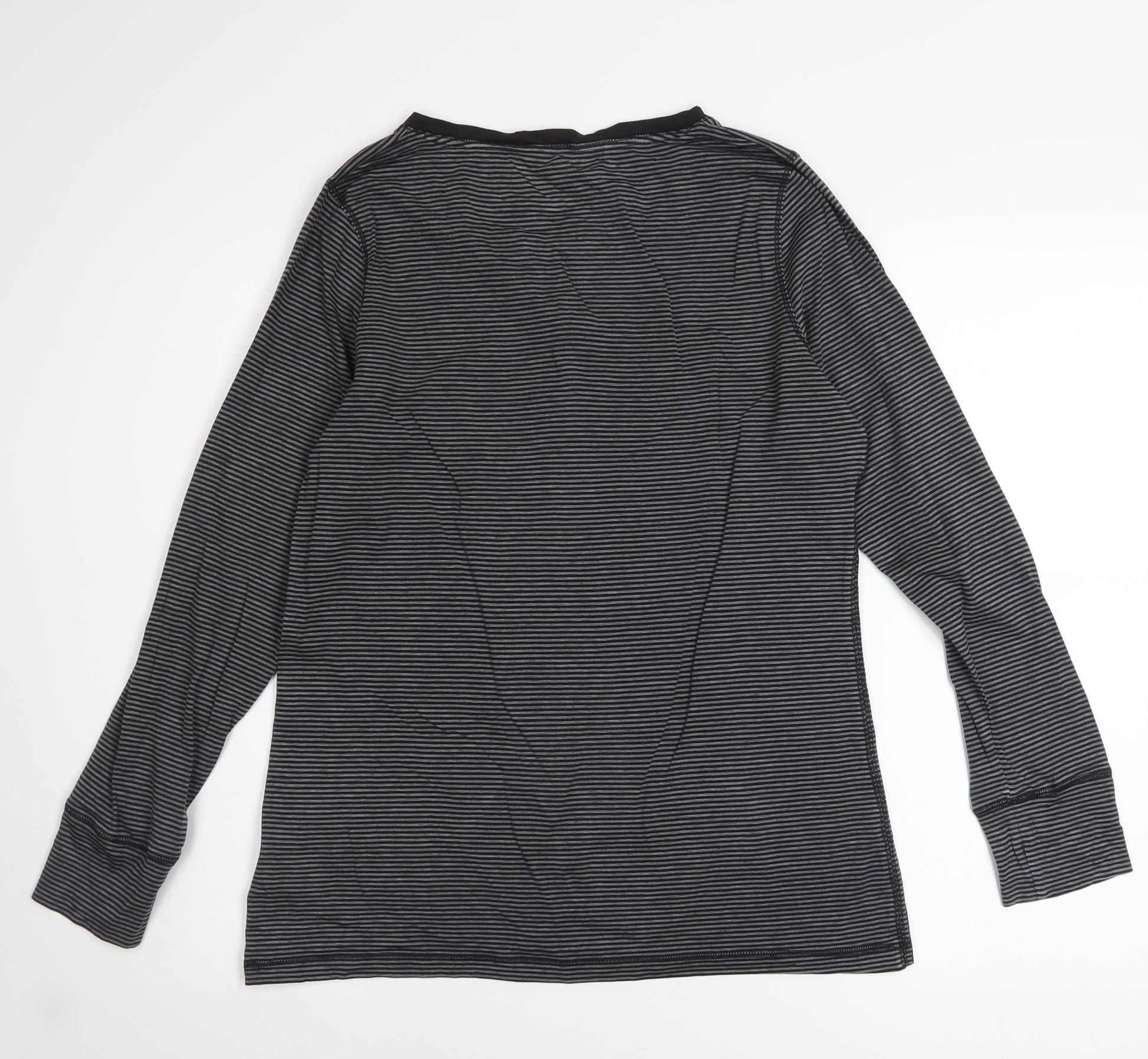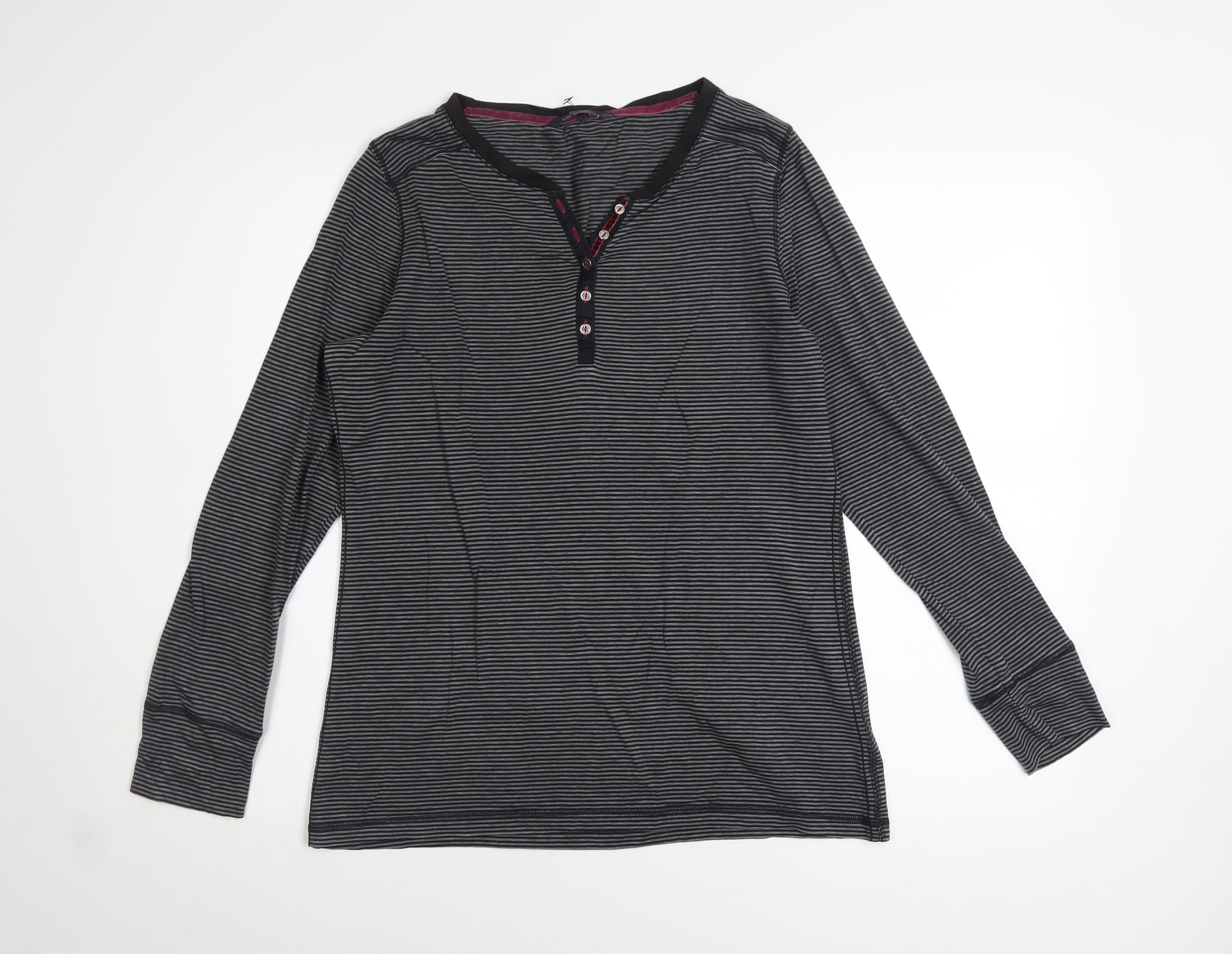 Womens Grey Striped Henley Long Sleeve Top UK 14
